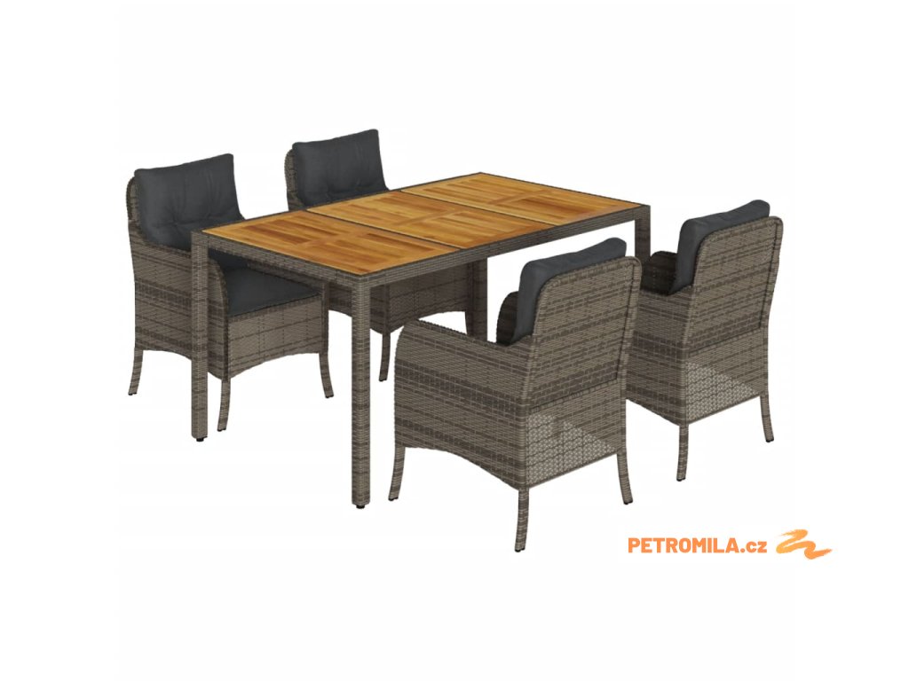 5dílný zahradní jídelní set s poduškami šedý polyratan