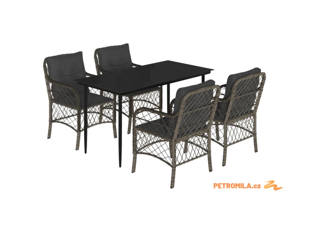 5dílný zahradní jídelní set s poduškami šedý polyratan