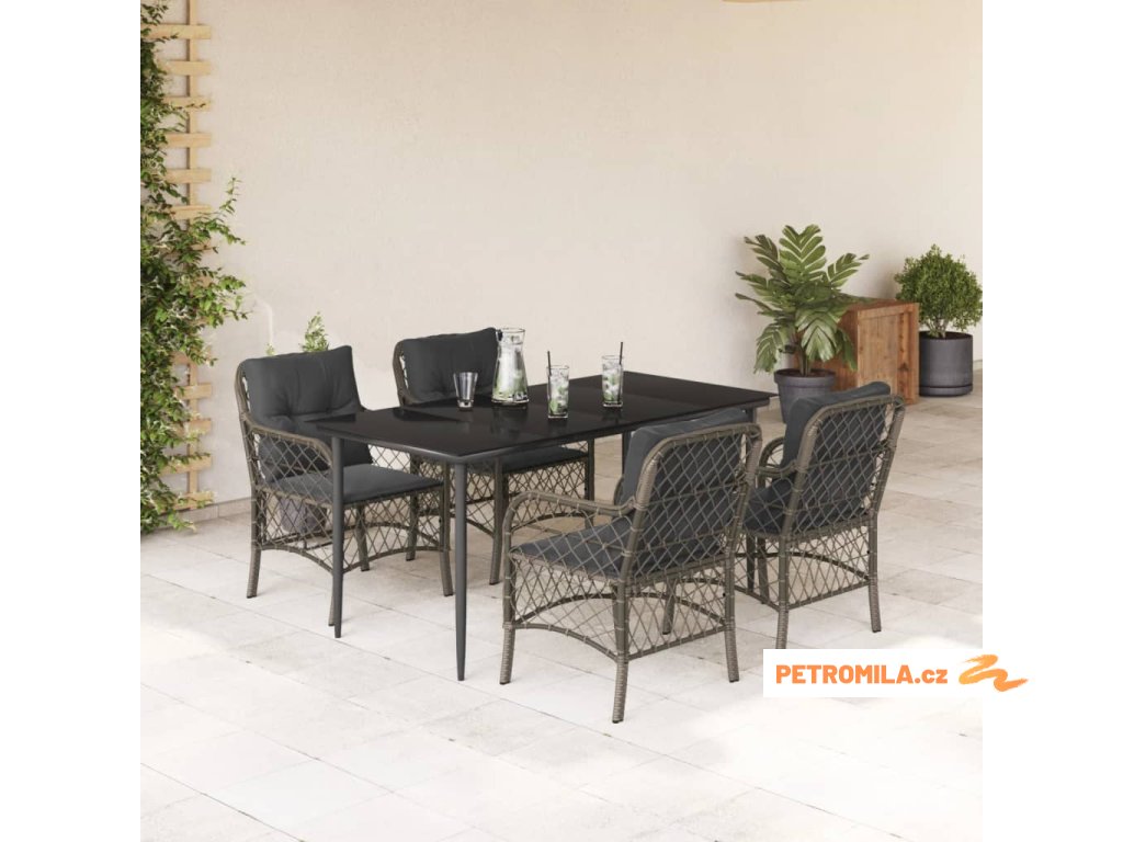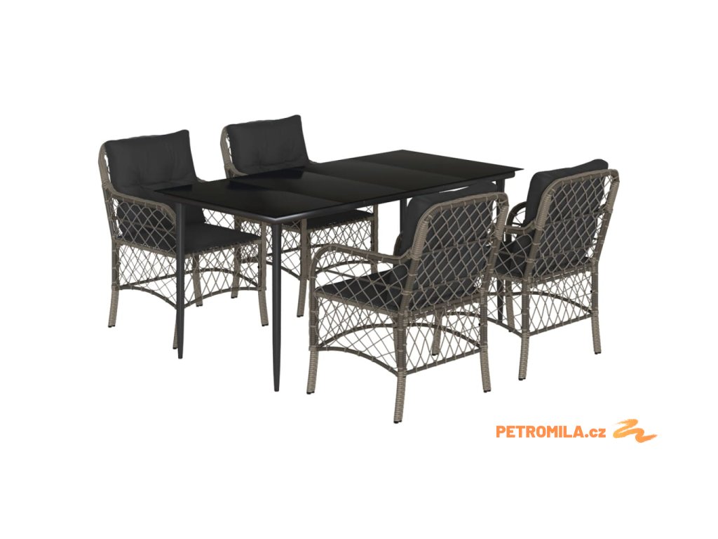 5dílný zahradní jídelní set s poduškami šedý polyratan