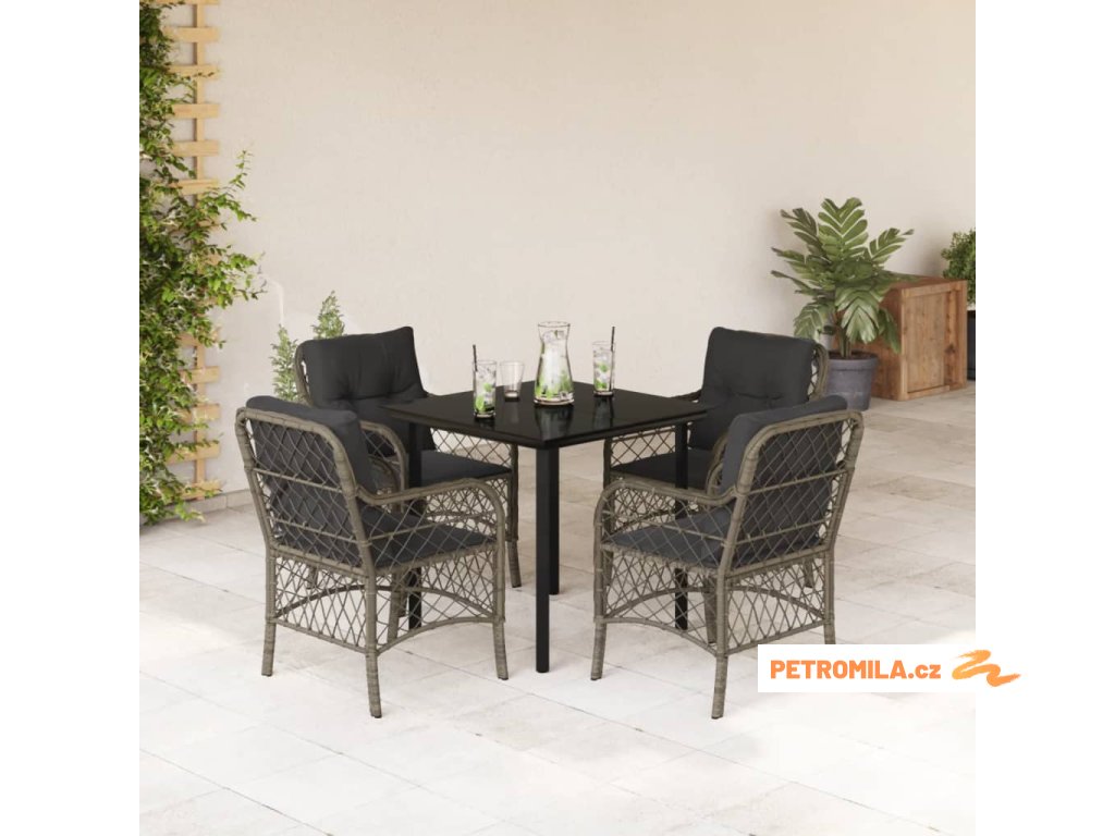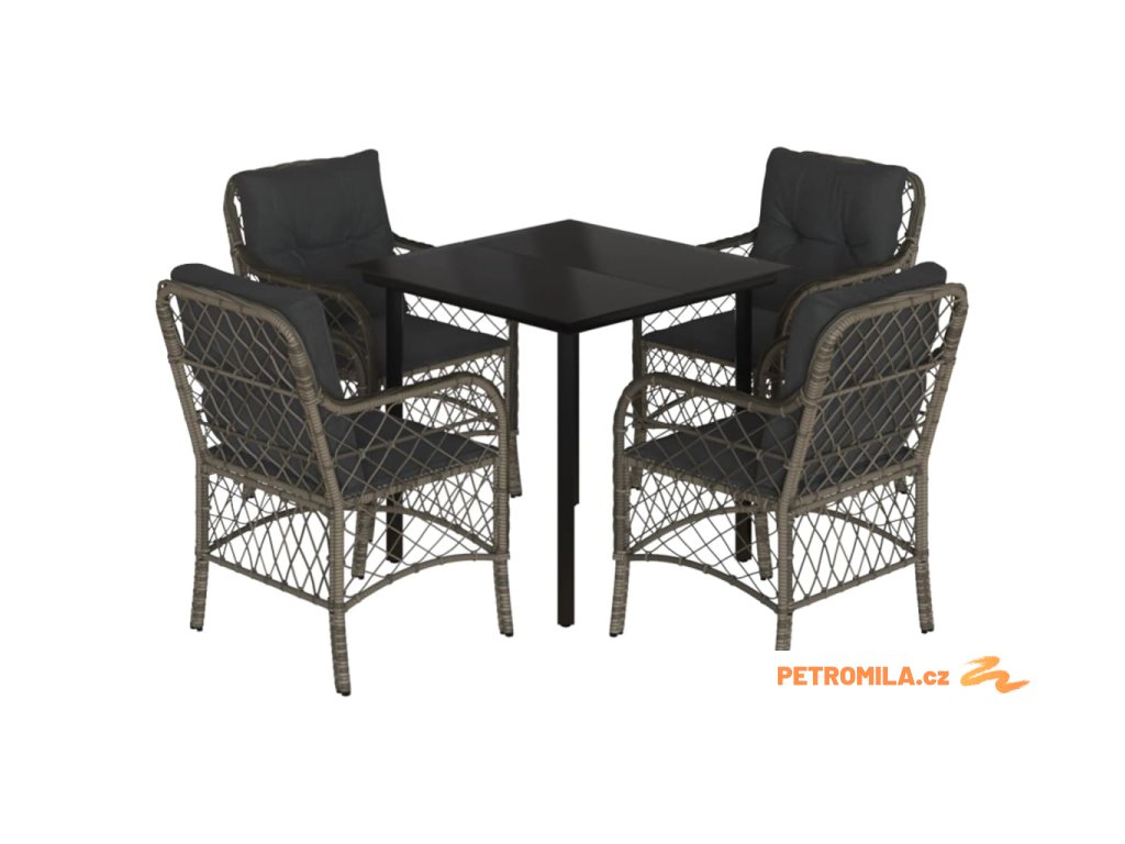 5dílný zahradní jídelní set s poduškami šedý polyratan