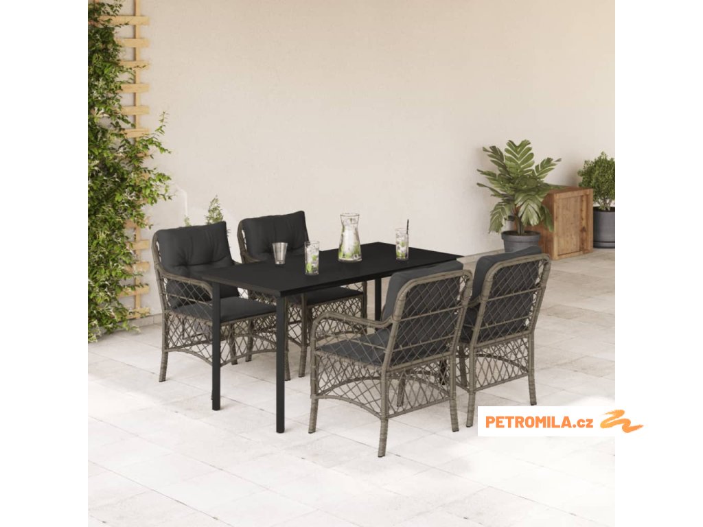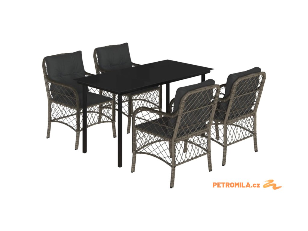 5dílný zahradní jídelní set s poduškami šedý polyratan