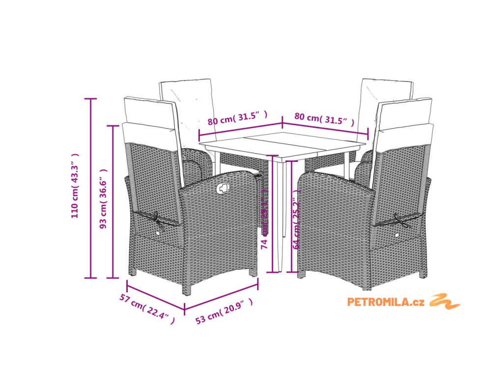 - Rozměry: 80 x 80 x 74 cm (Š x H x V)