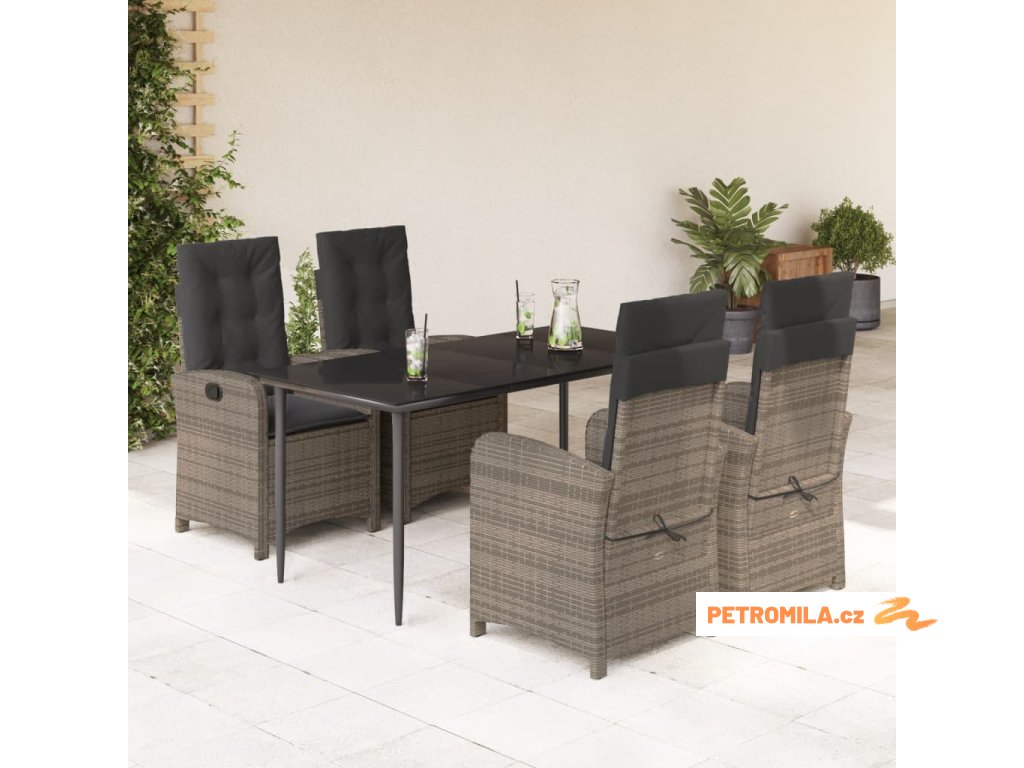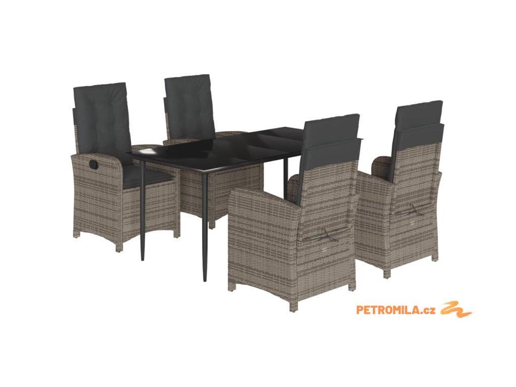 5dílný zahradní jídelní set s poduškami šedý polyratan