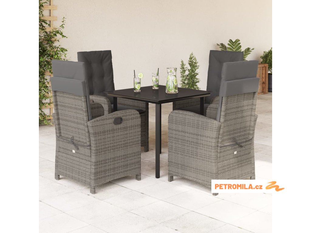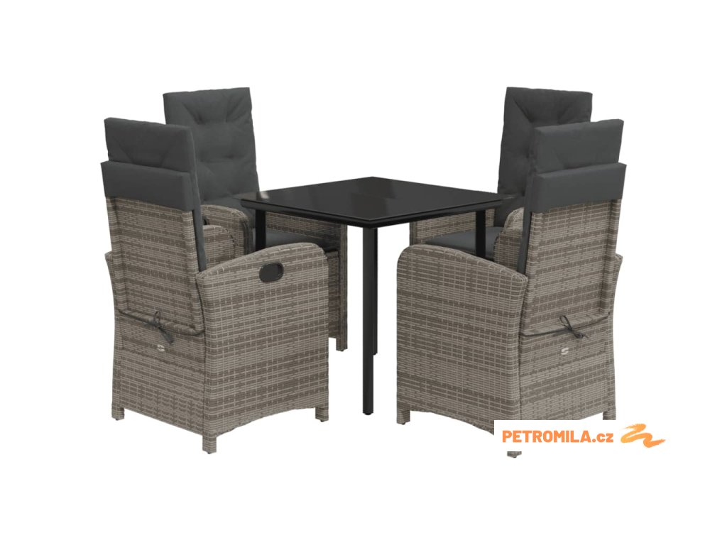 5dílný zahradní jídelní set s poduškami šedý polyratan