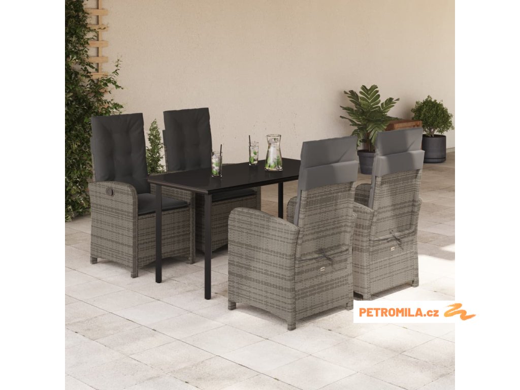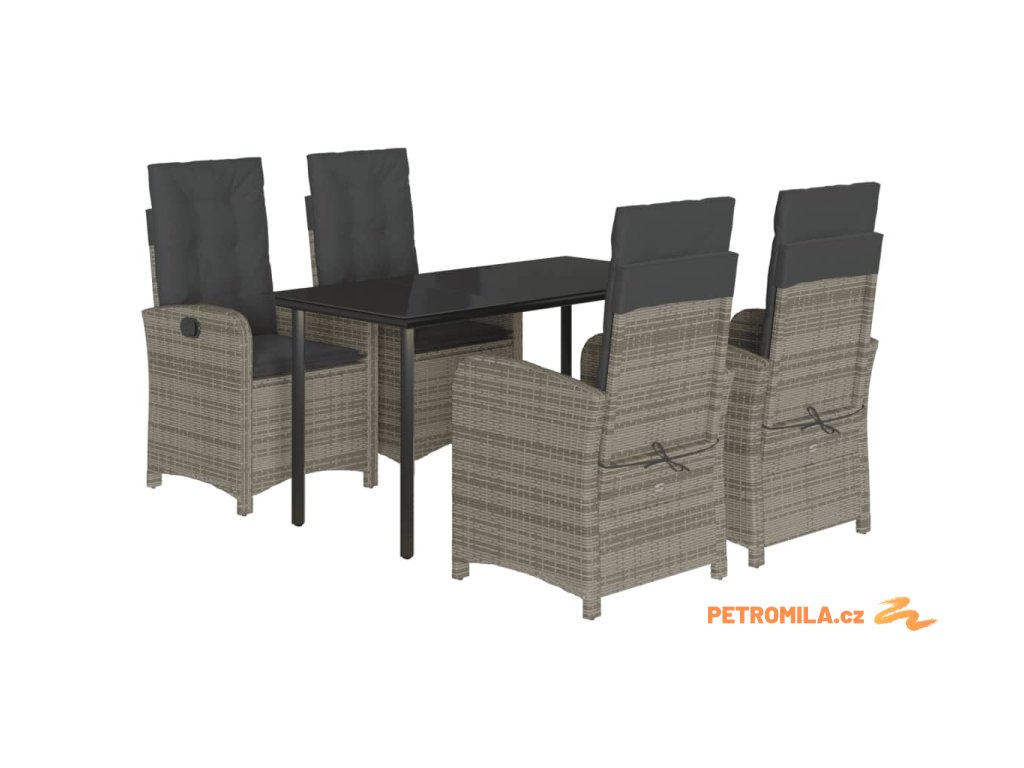 5dílný zahradní jídelní set s poduškami šedý polyratan