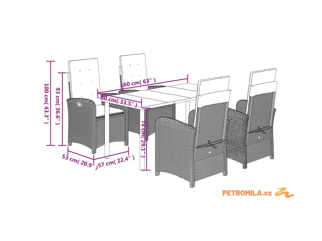 - Rozměry při poloze vsedě: 57 x 58,5 x 93 cm (Š x H x V)