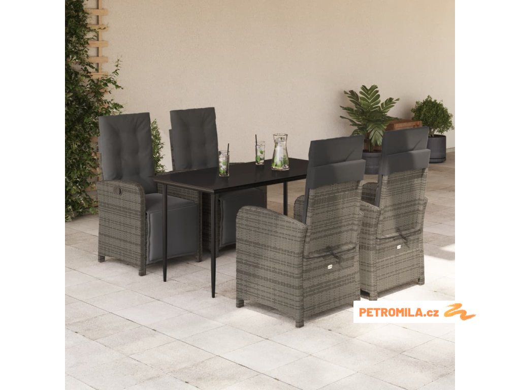5dílný zahradní jídelní set s poduškami šedý polyratan