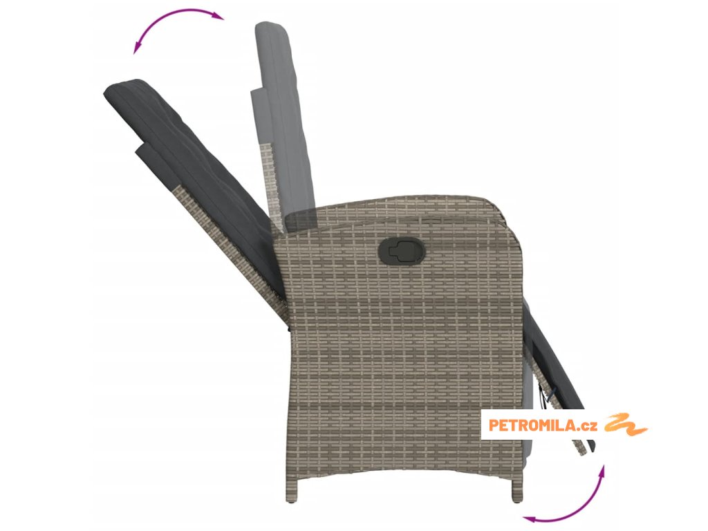 - Nastavitelné opěradlo a opěrka nohou: Tato zahradní židle je opatřena rukojetí. Zatáhnutím za ni můžete opěradlo a opěrku nohou nastavit do libovolné polohy. Stejně tak je můžete rychle vrátit do původní pozice.