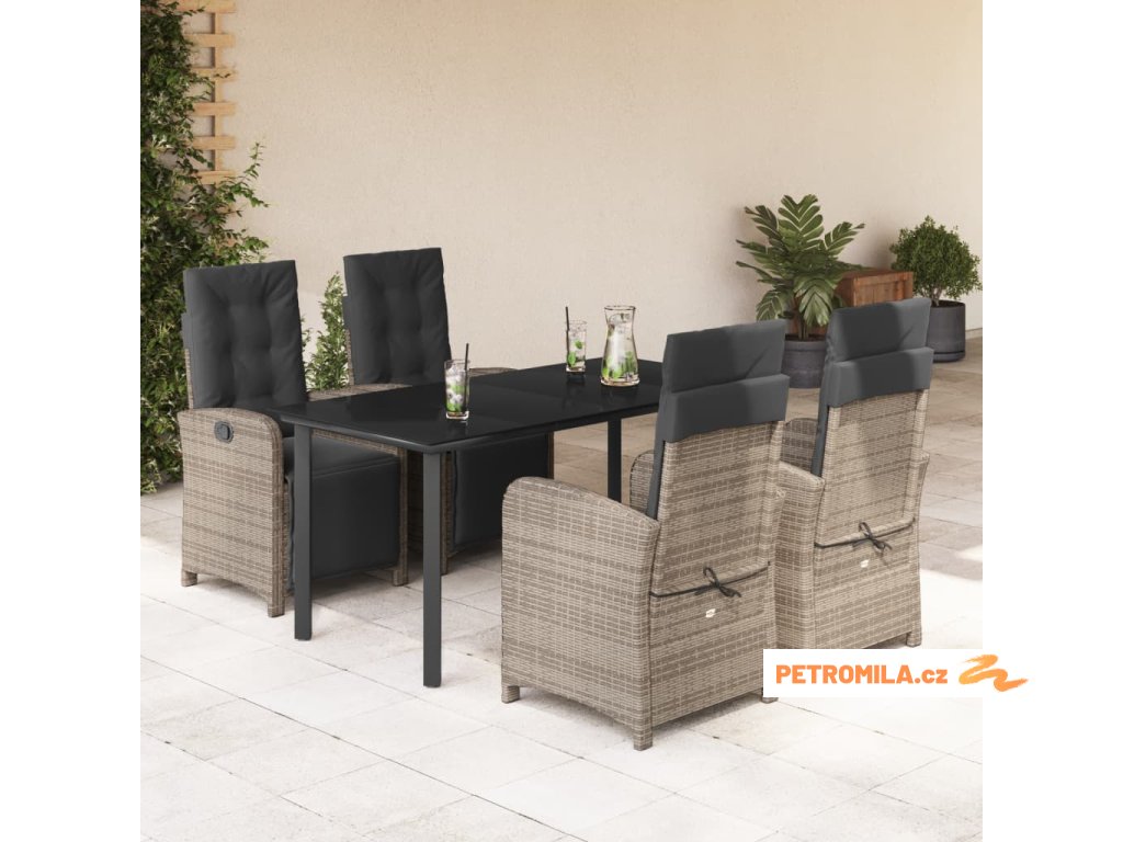 5dílný zahradní jídelní set s poduškami šedý polyratan