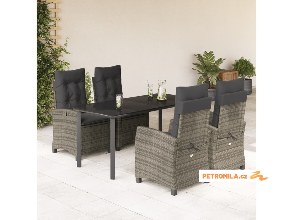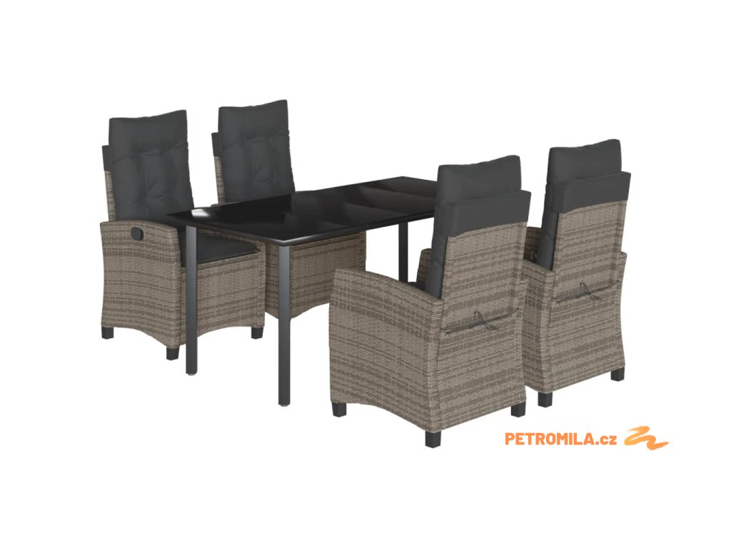 5dílný zahradní jídelní set s poduškami šedý polyratan