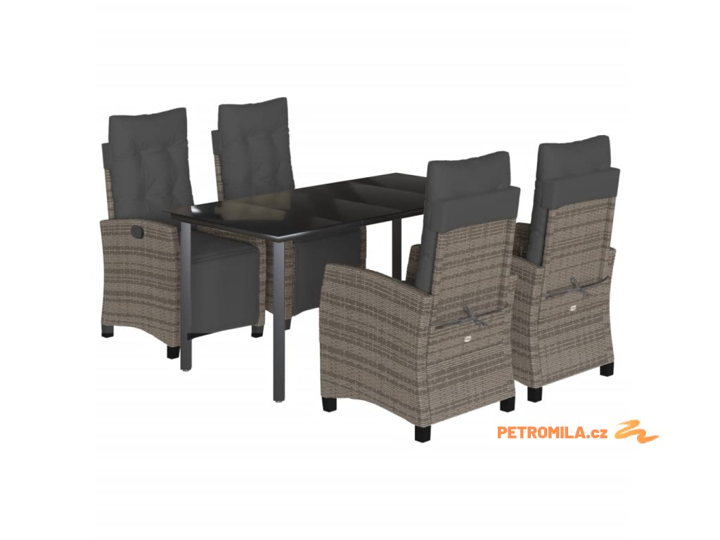 5dílný zahradní jídelní set s poduškami šedý polyratan