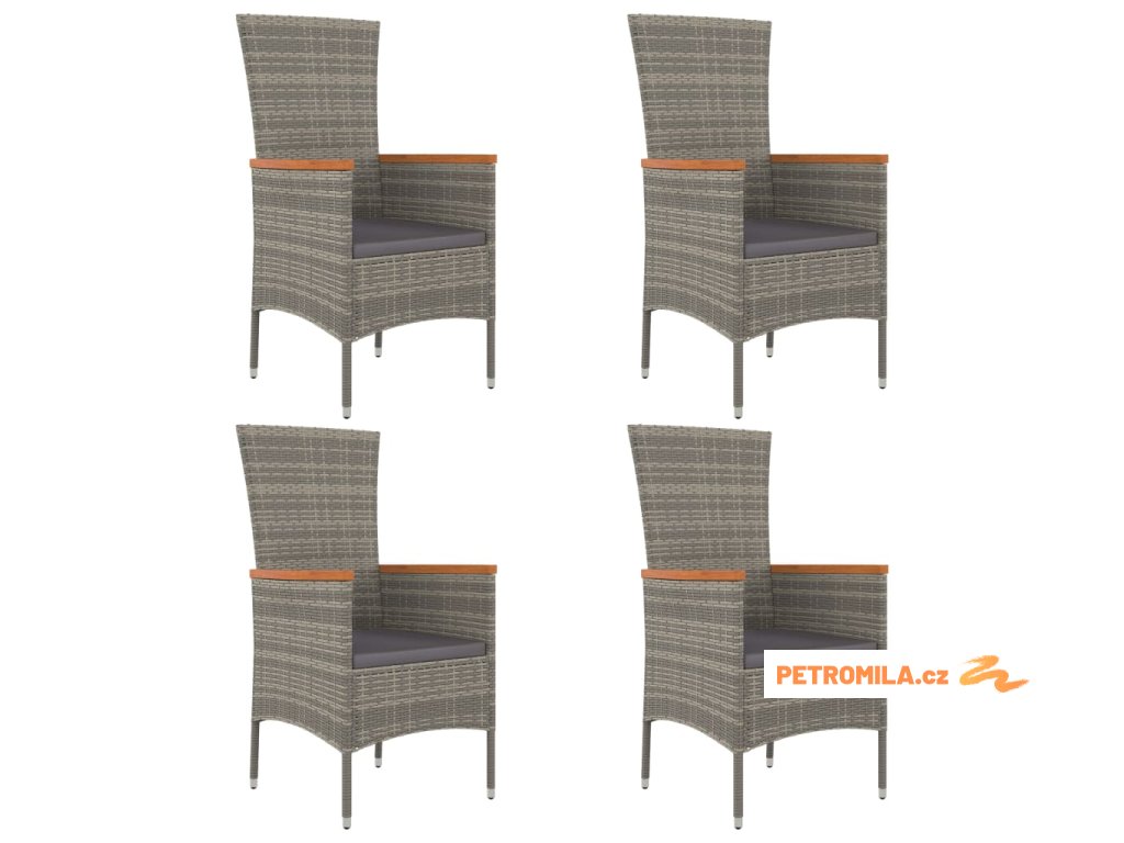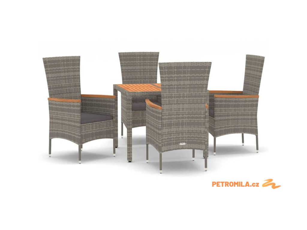 5dílný zahradní jídelní set s poduškami šedý polyratan