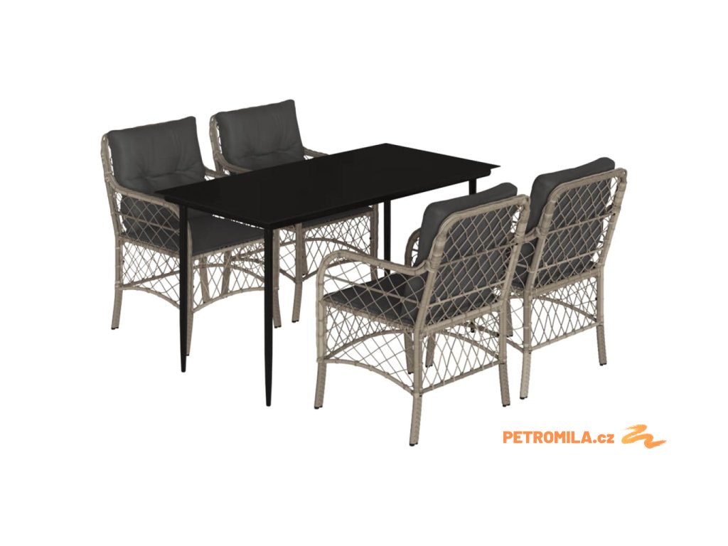 5dílný zahradní jídelní set s poduškami světle šedý polyratan