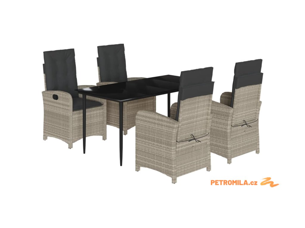 5dílný zahradní jídelní set s poduškami světle šedý polyratan