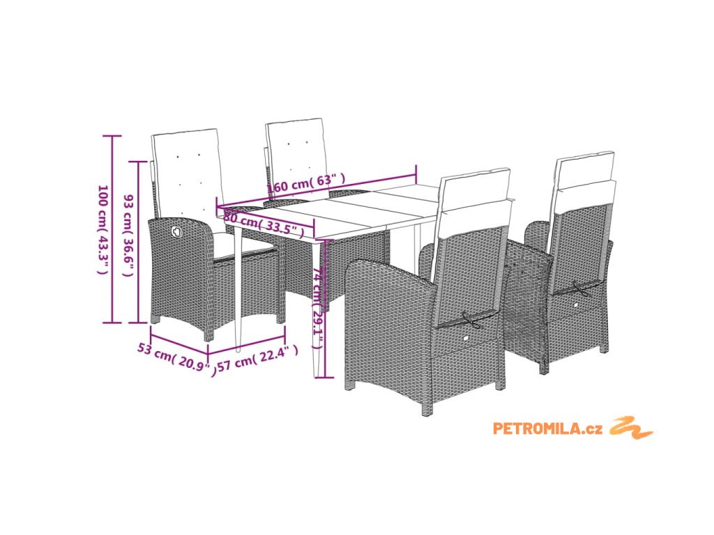- Rozměry: 160 x 80 x 74 cm (Š x H x V)