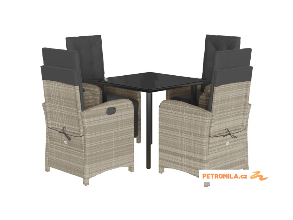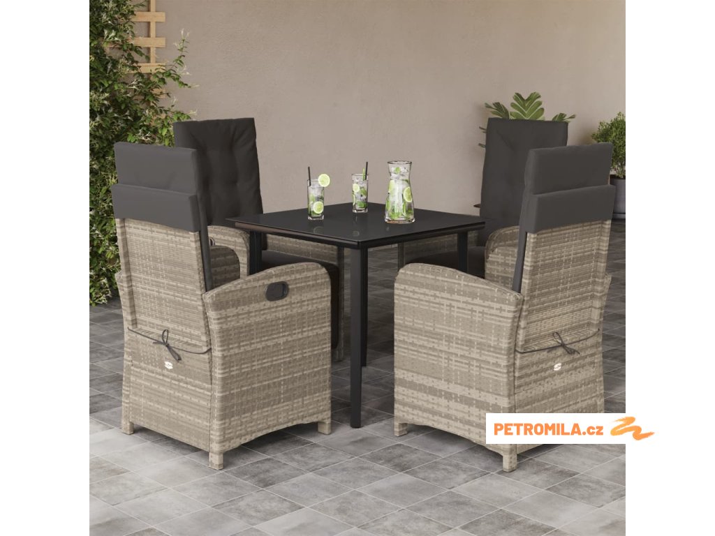 5dílný zahradní jídelní set s poduškami světle šedý polyratan