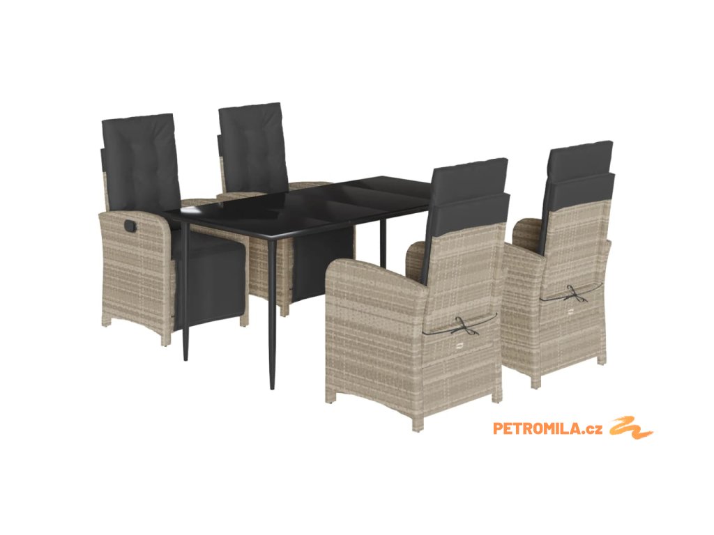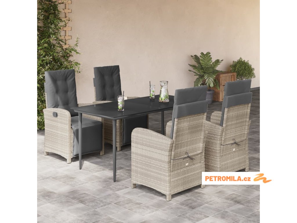 5dílný zahradní jídelní set s poduškami světle šedý polyratan