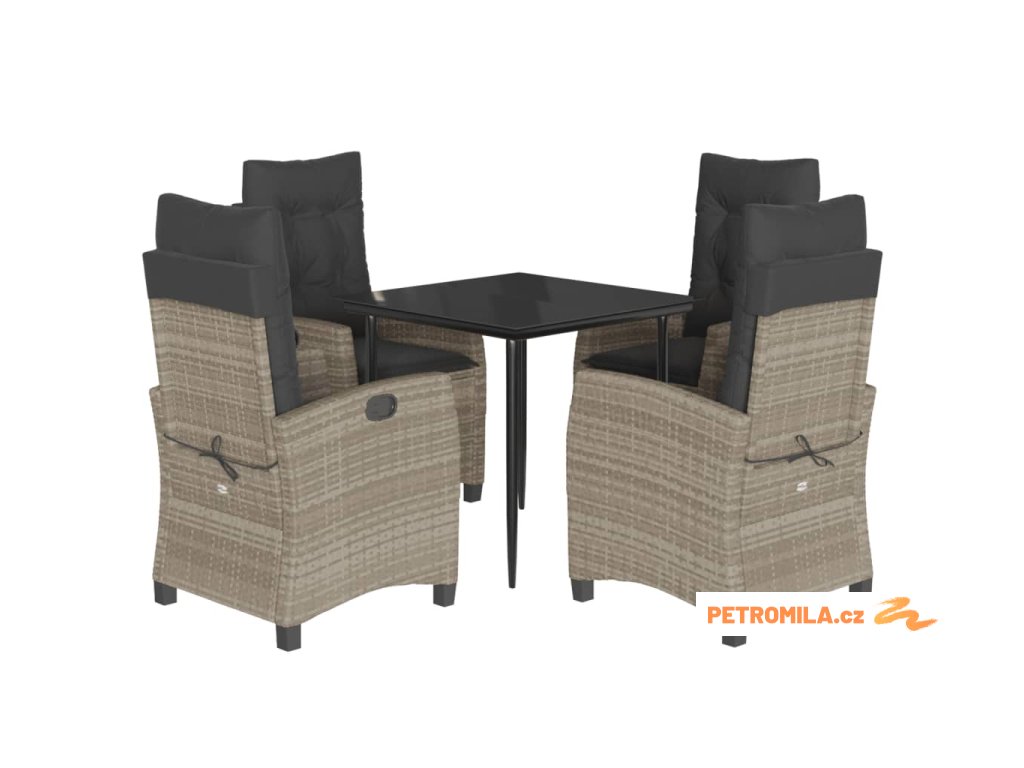 5dílný zahradní jídelní set s poduškami světle šedý polyratan