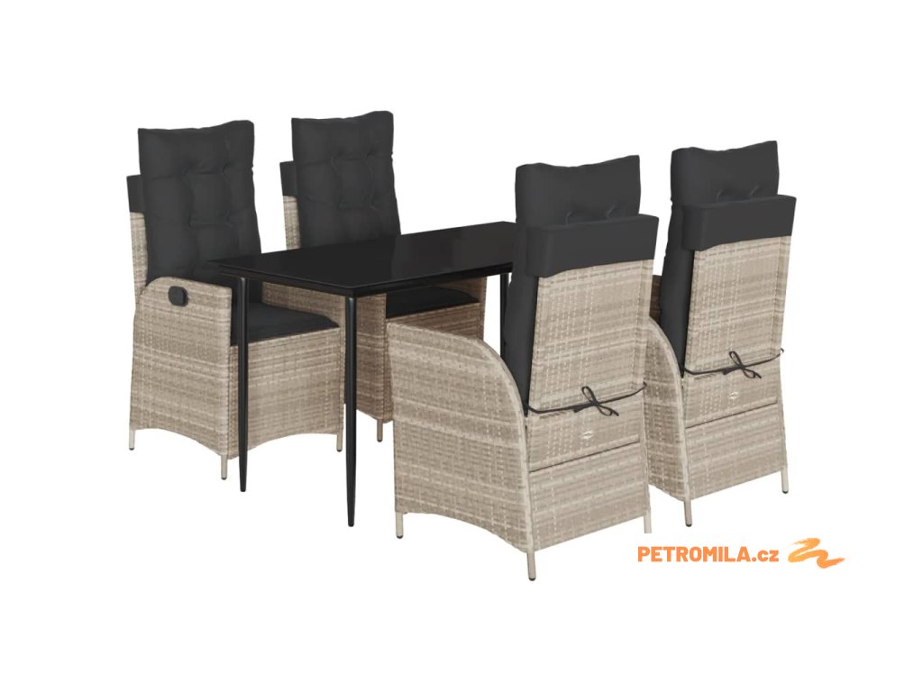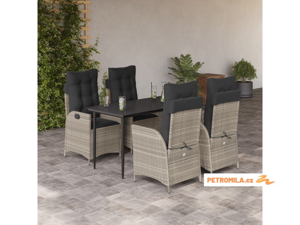 5dílný zahradní jídelní set s poduškami světle šedý polyratan