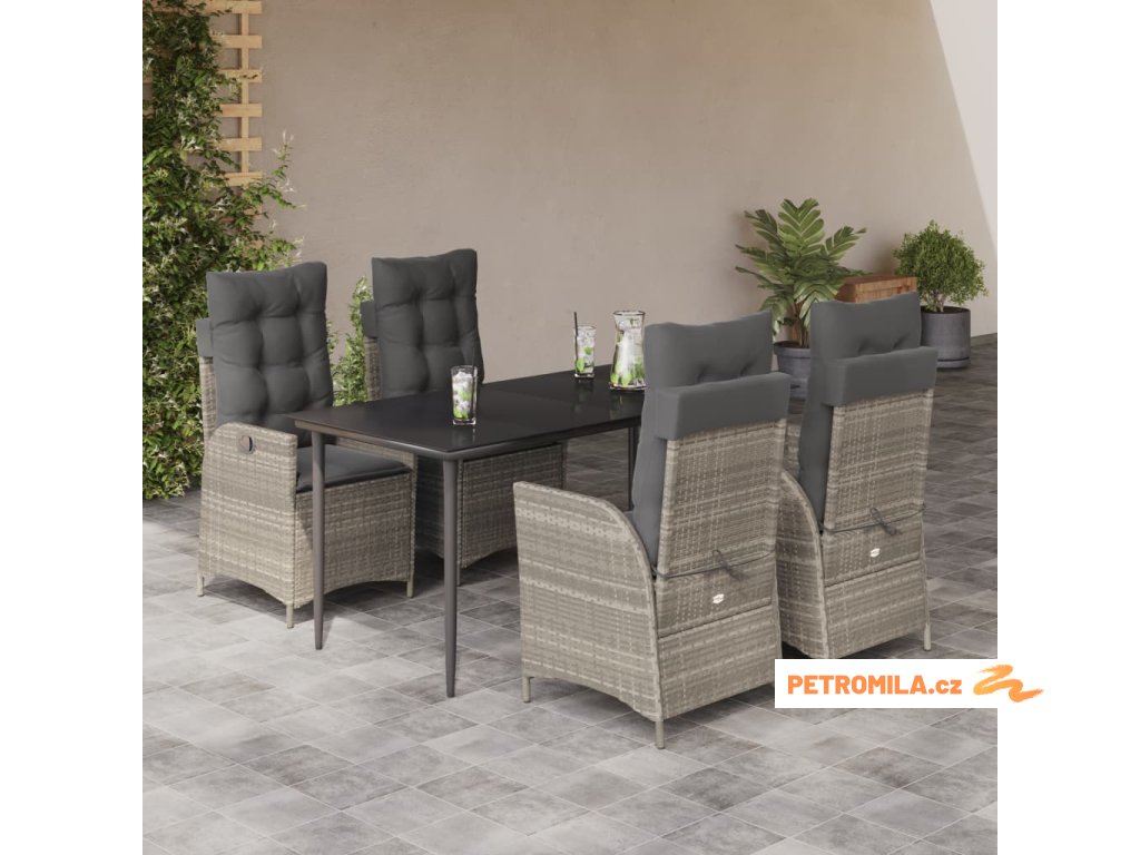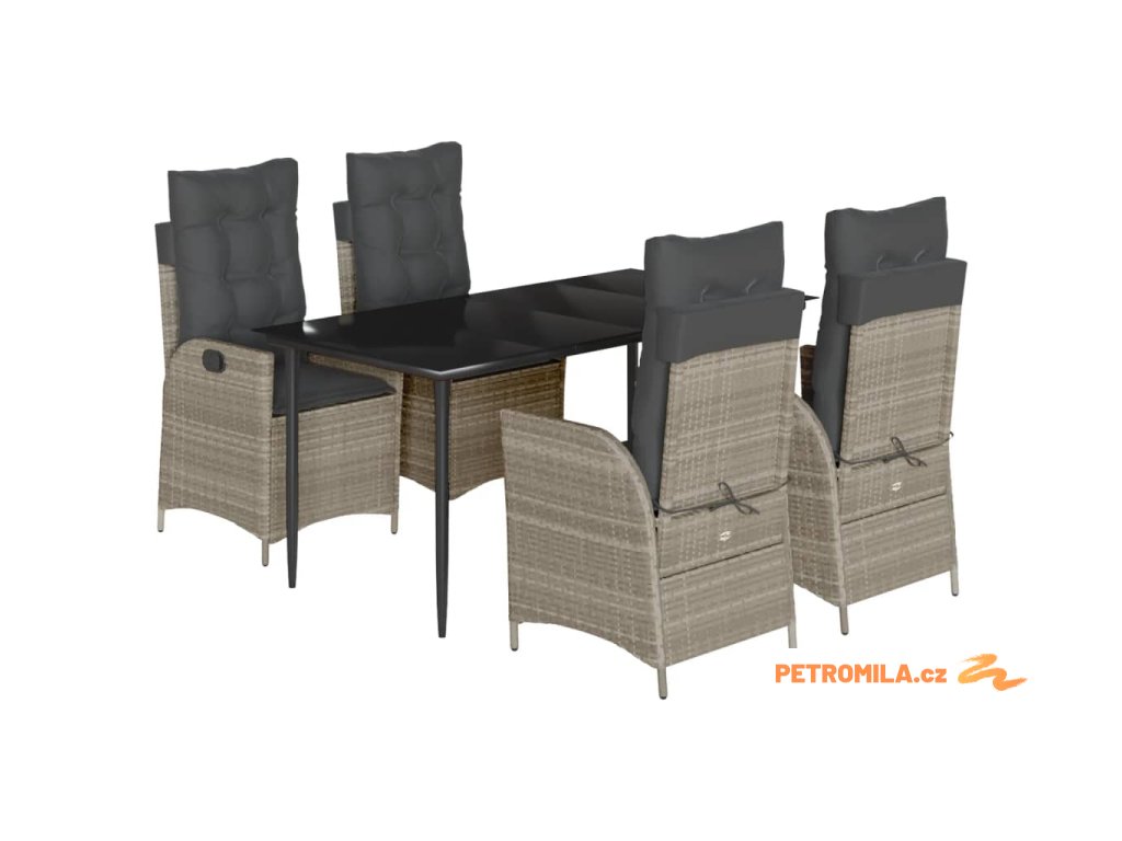5dílný zahradní jídelní set s poduškami světle šedý polyratan