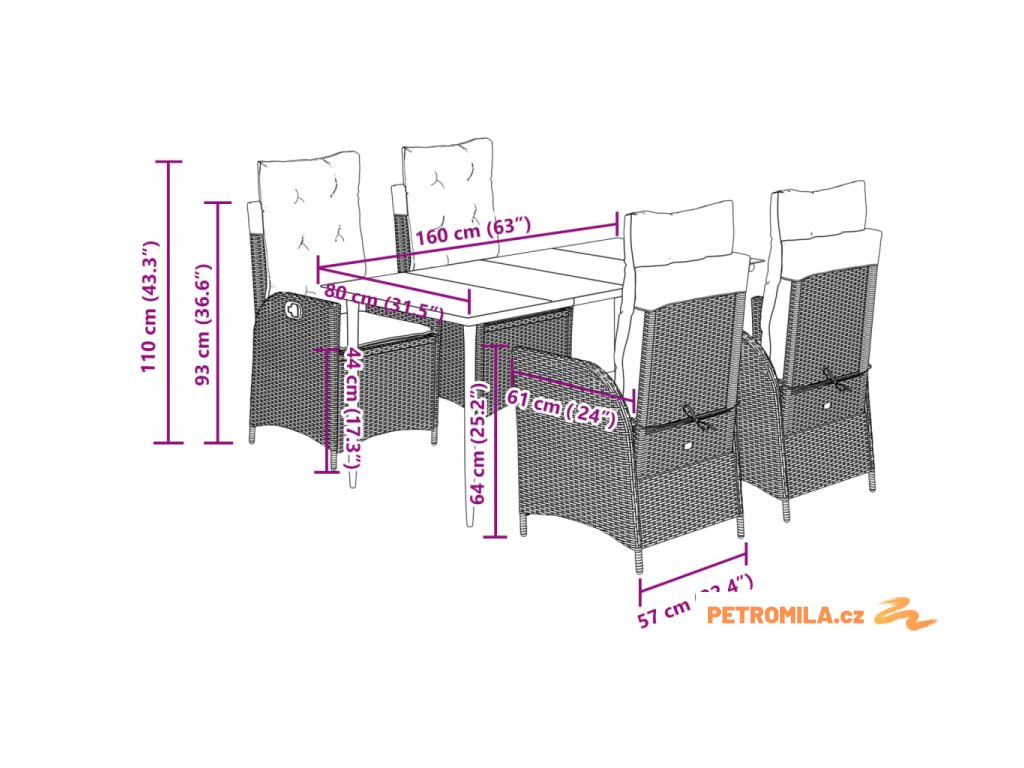 - Rozměry při poloze vsedě: 57 x 61 x 93 cm (Š x H x V)