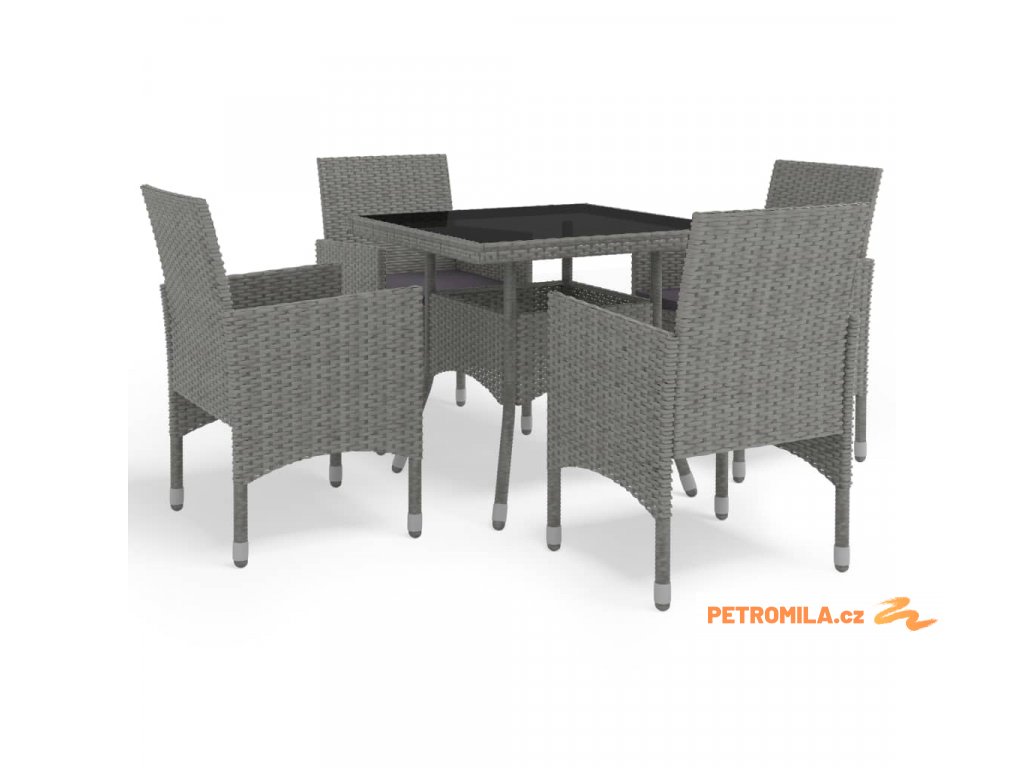 5dílný zahradní jídelní set šedý polyratan a sklo
