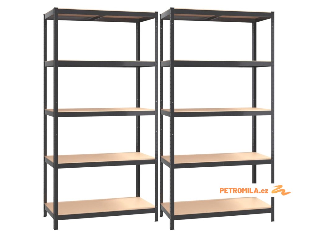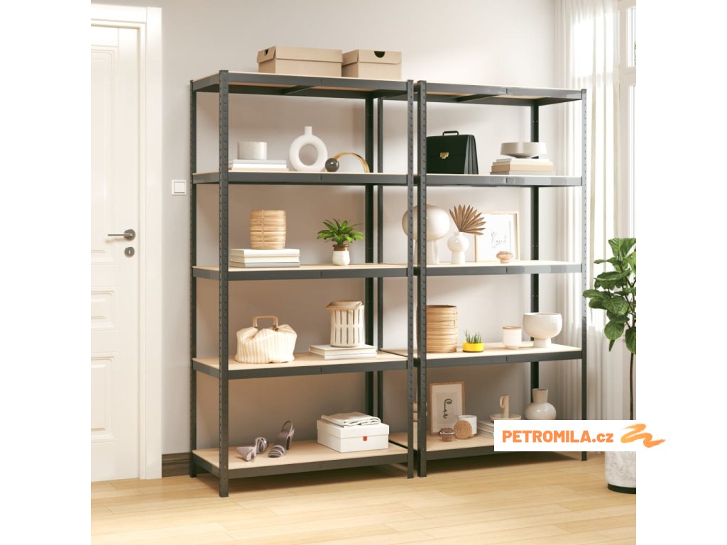 5patrové úložné regály 2 ks antracitové ocel a kompozitní dřevo