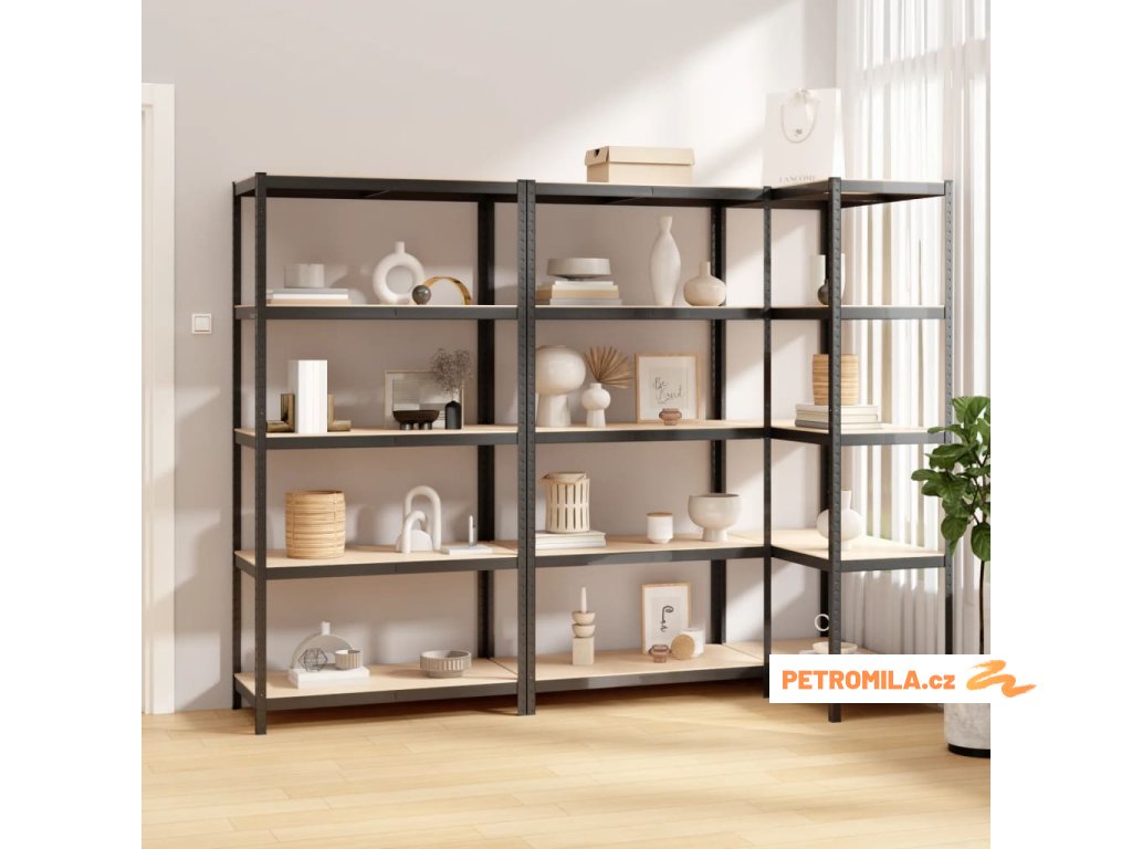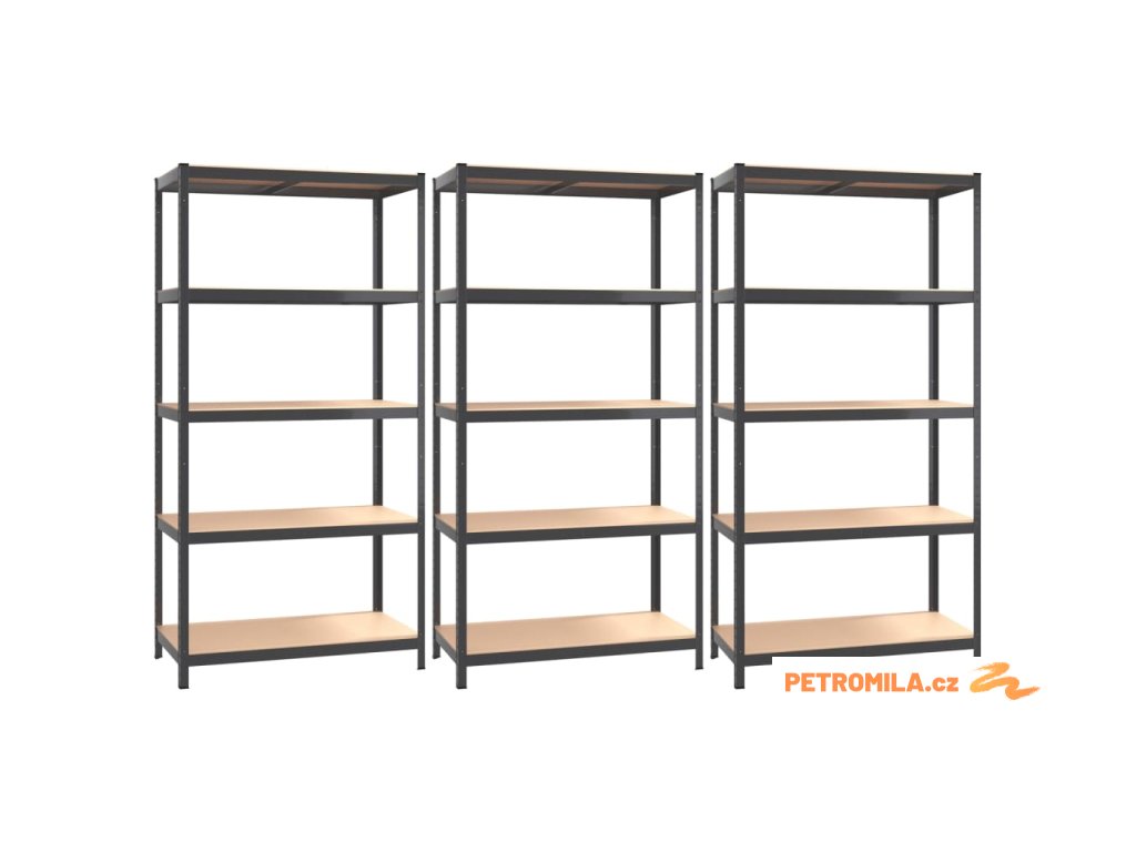 5patrové úložné regály 3 ks antracitové ocel a kompozitní dřevo
