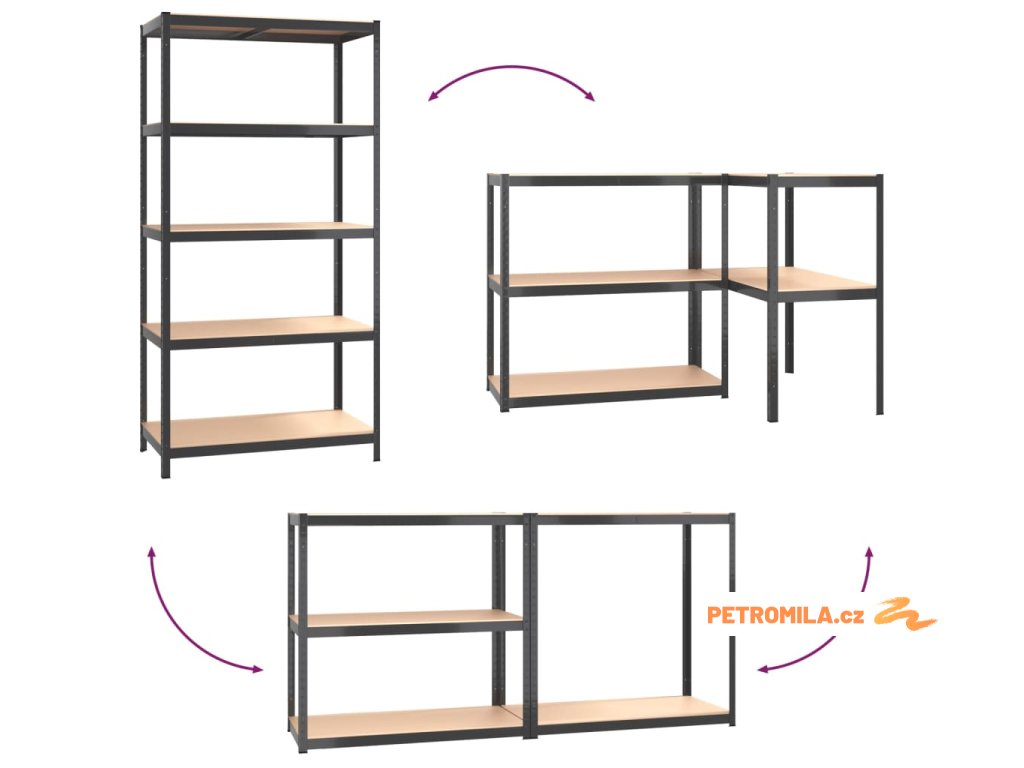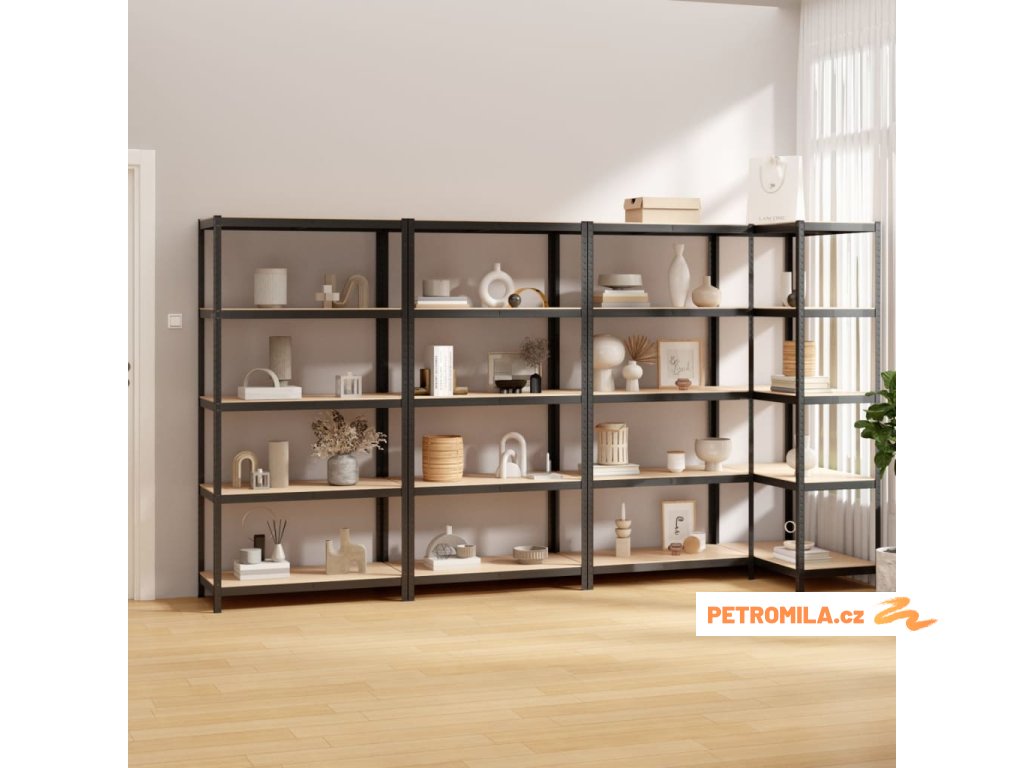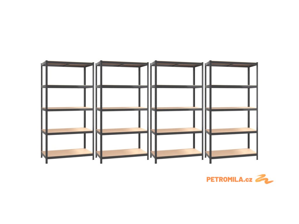 5patrové úložné regály 4 ks antracitové ocel a kompozitní dřevo
