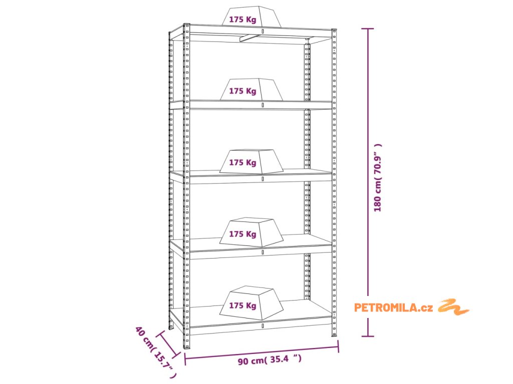 - Vysoká nosnost: Vzhledem k silnému materiálu, výztužným tyčím pod každou policí a konstrukci bezšroubových polic mají regály výjimečně vysokou nosnost.