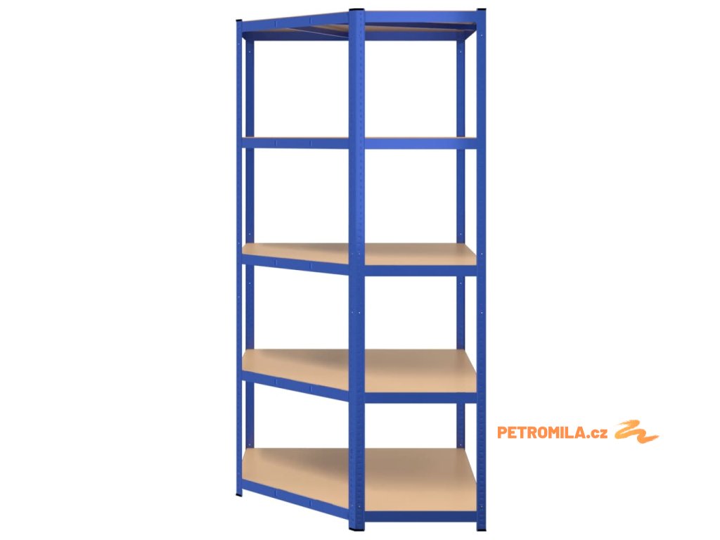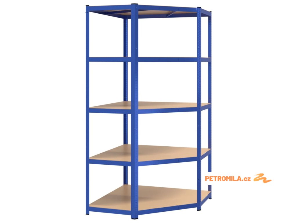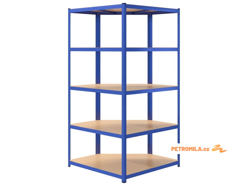 5patrový rohový regál modrý ocel a kompozitní dřevo