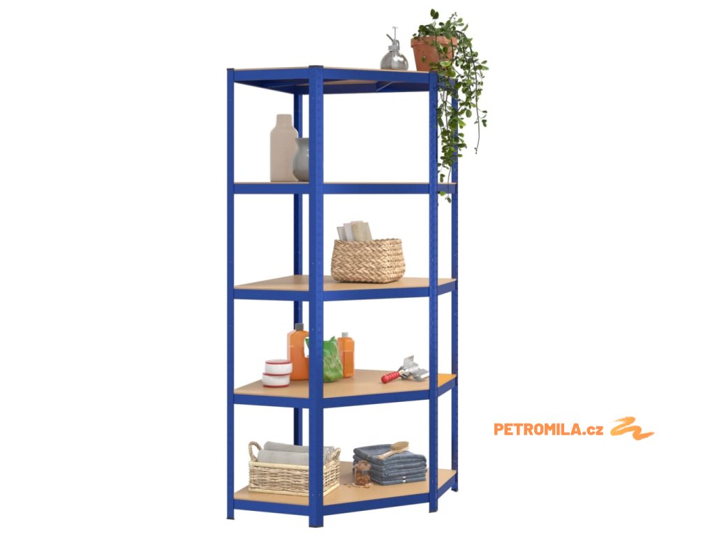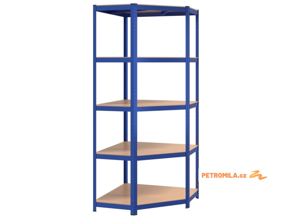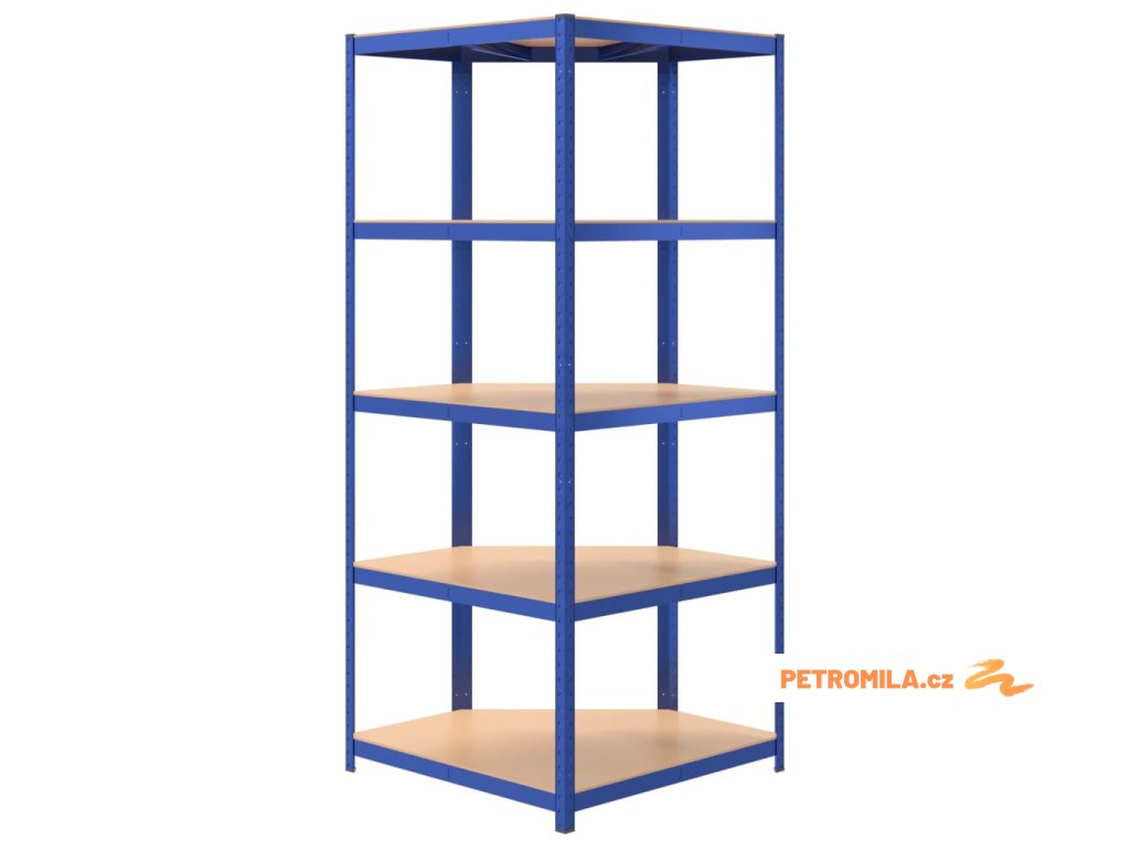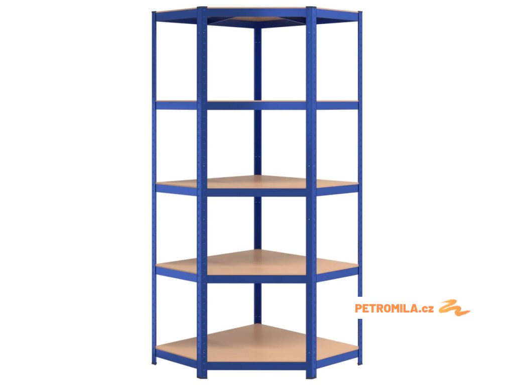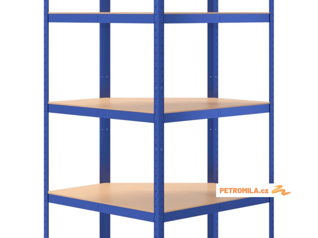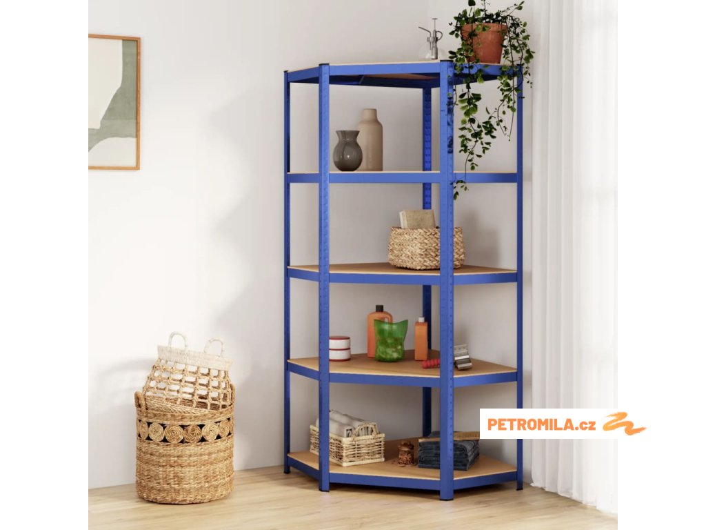 5patrový rohový regál modrý ocel a kompozitní dřevo