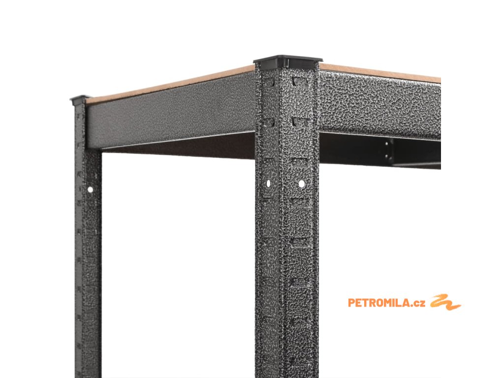 - Vysoká nosnost: Vzhledem k extra silnému materiálu, výztužným tyčím pod každou policí a konstrukci bezšroubových polic má tento velmi odolný regál výjimečně vysokou nosnost.