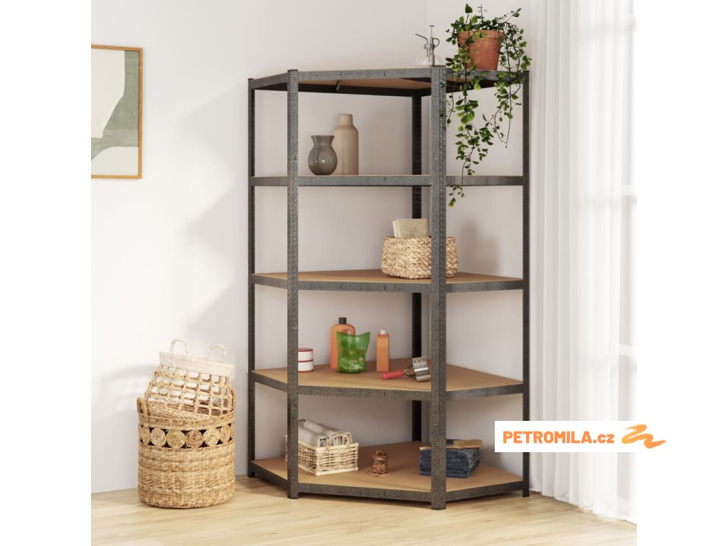 Tento robustní rohový regál je vynikající volbou pro domácí i komerční skladování a poskytuje dostatek prostoru pro úhledné uspořádání všech položek.