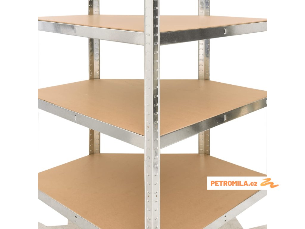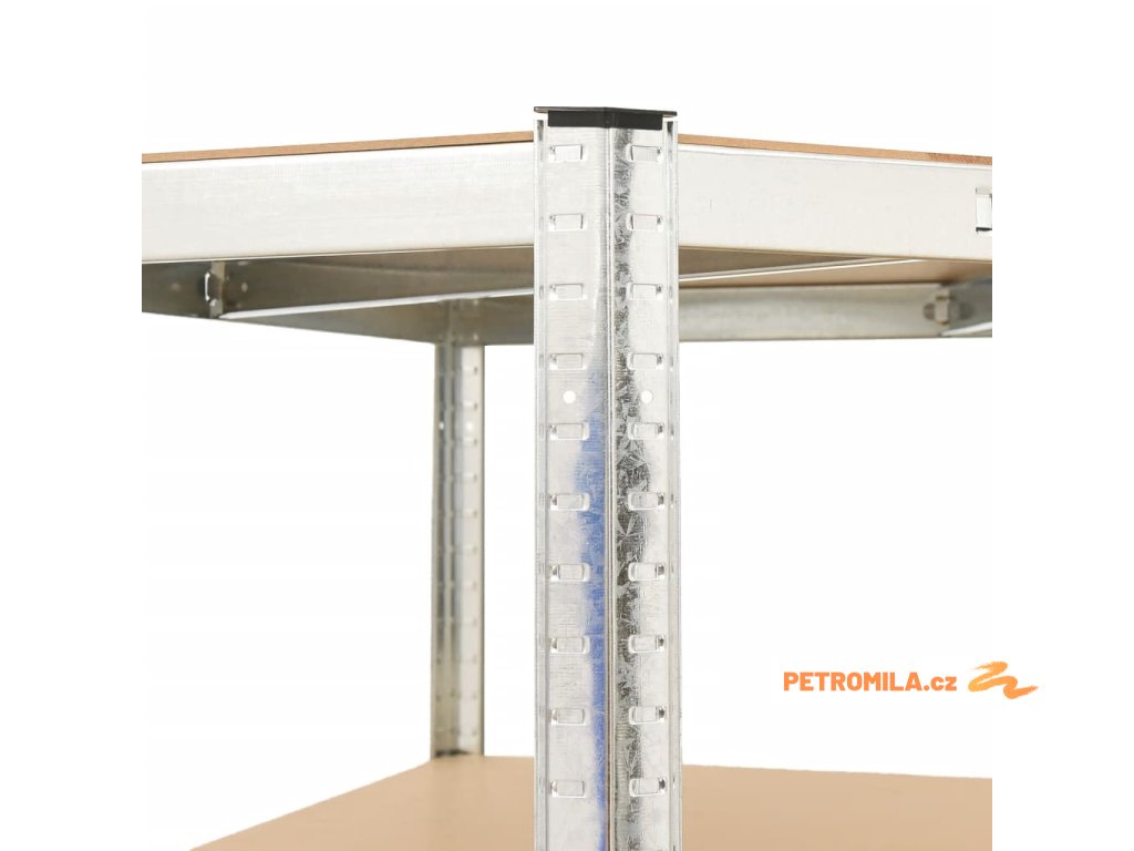 - Vysoká nosnost: Vzhledem k extra silnému materiálu, výztužným tyčím pod každou policí a konstrukci bezšroubových polic má tento velmi odolný regál výjimečně vysokou nosnost.