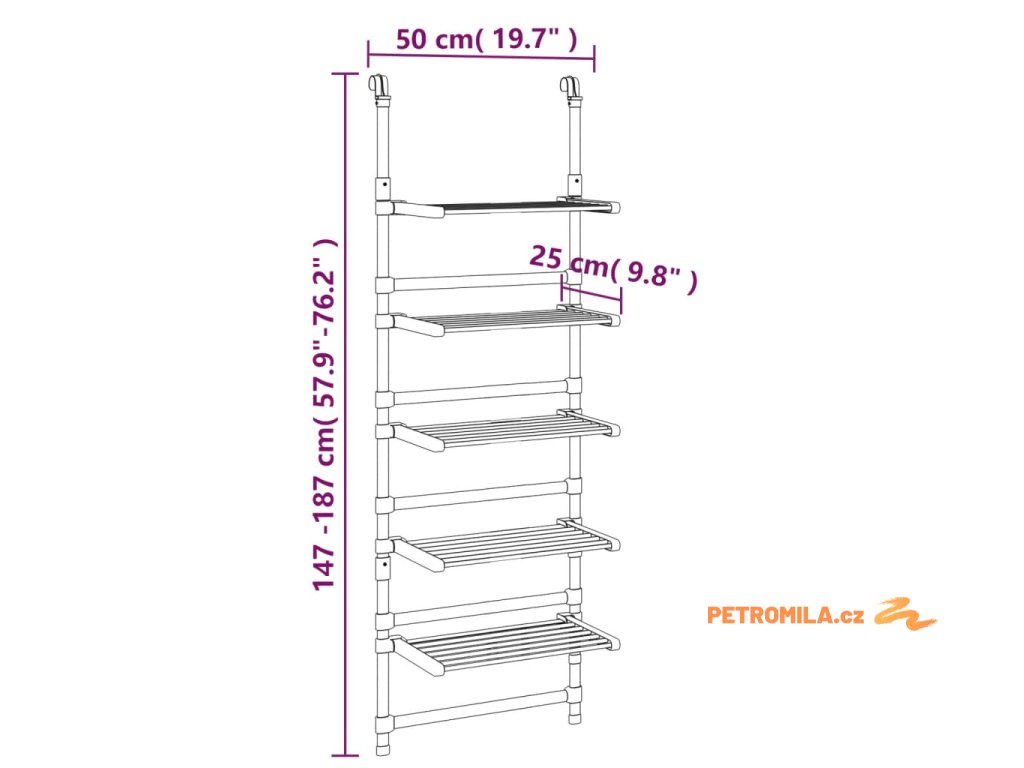 - Celkové rozměry: 50 x 25 x (147–187) cm (Š x H x V)
