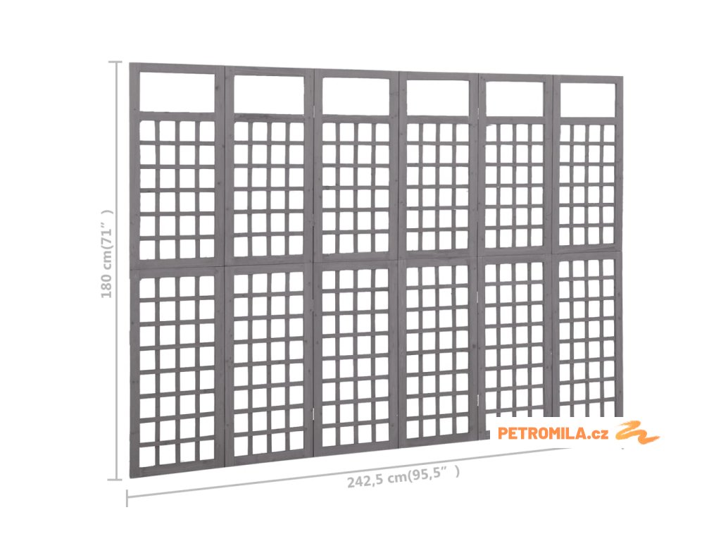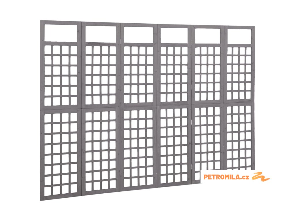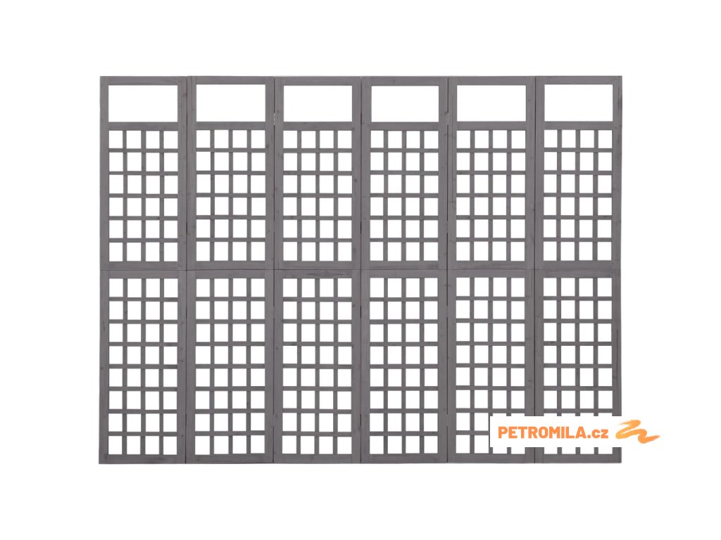 6dílná dělicí stěna / treláž masivní jedle šedá 242,5 x 180 cm