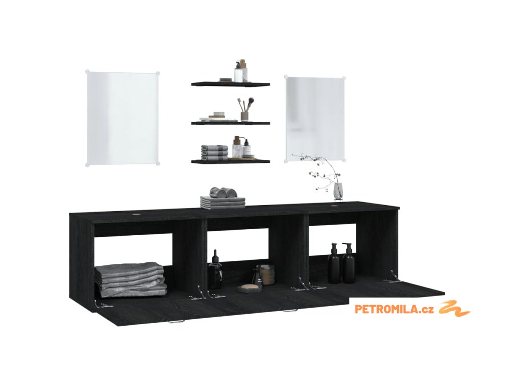 6dílná koupelnová sestava černá kompozitní dřevo