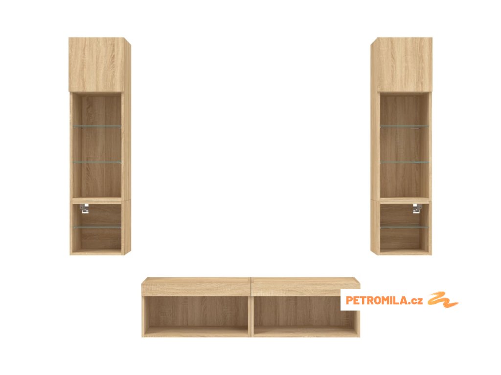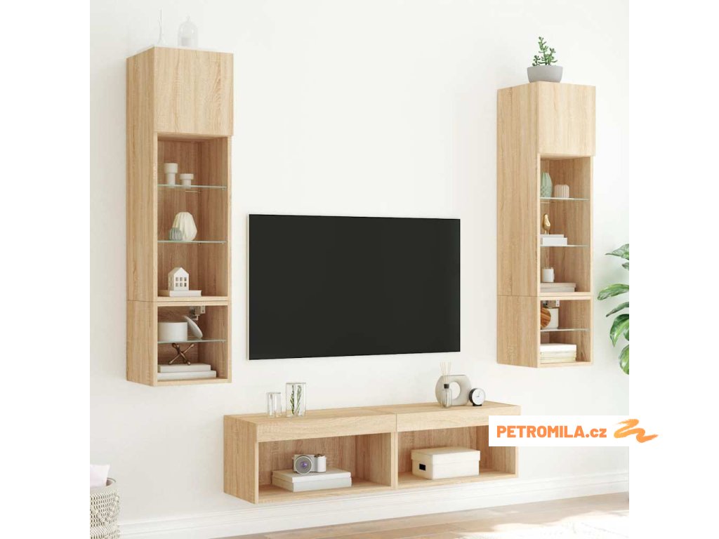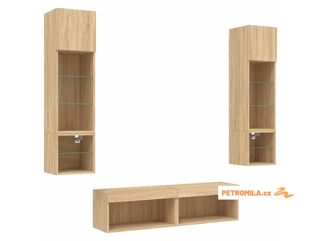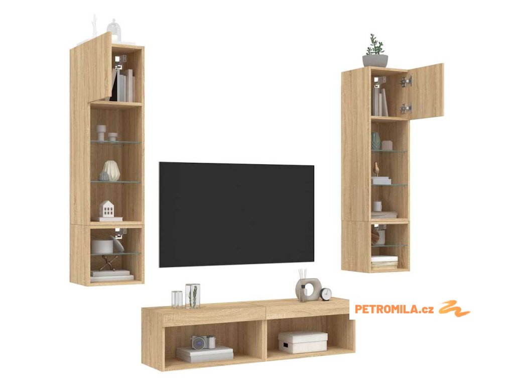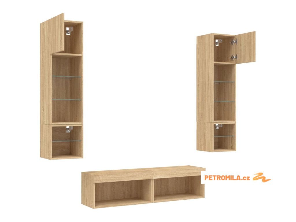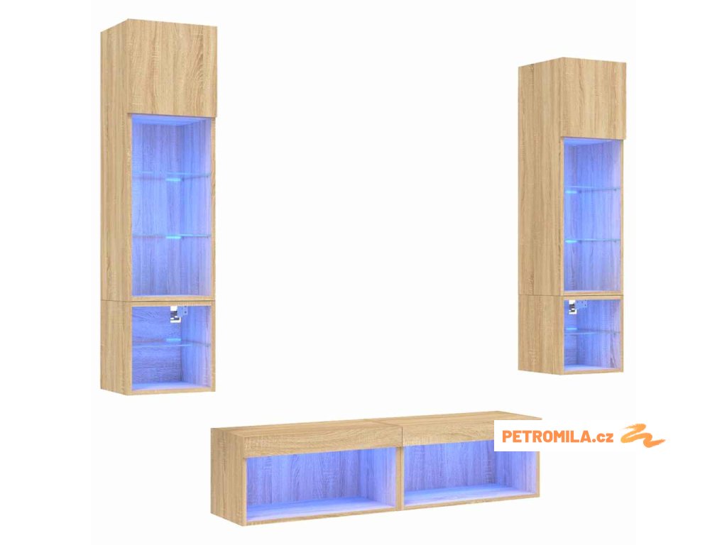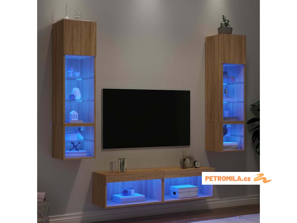 6dílná obývací stěna s LED dub sonoma kompozitní dřevo