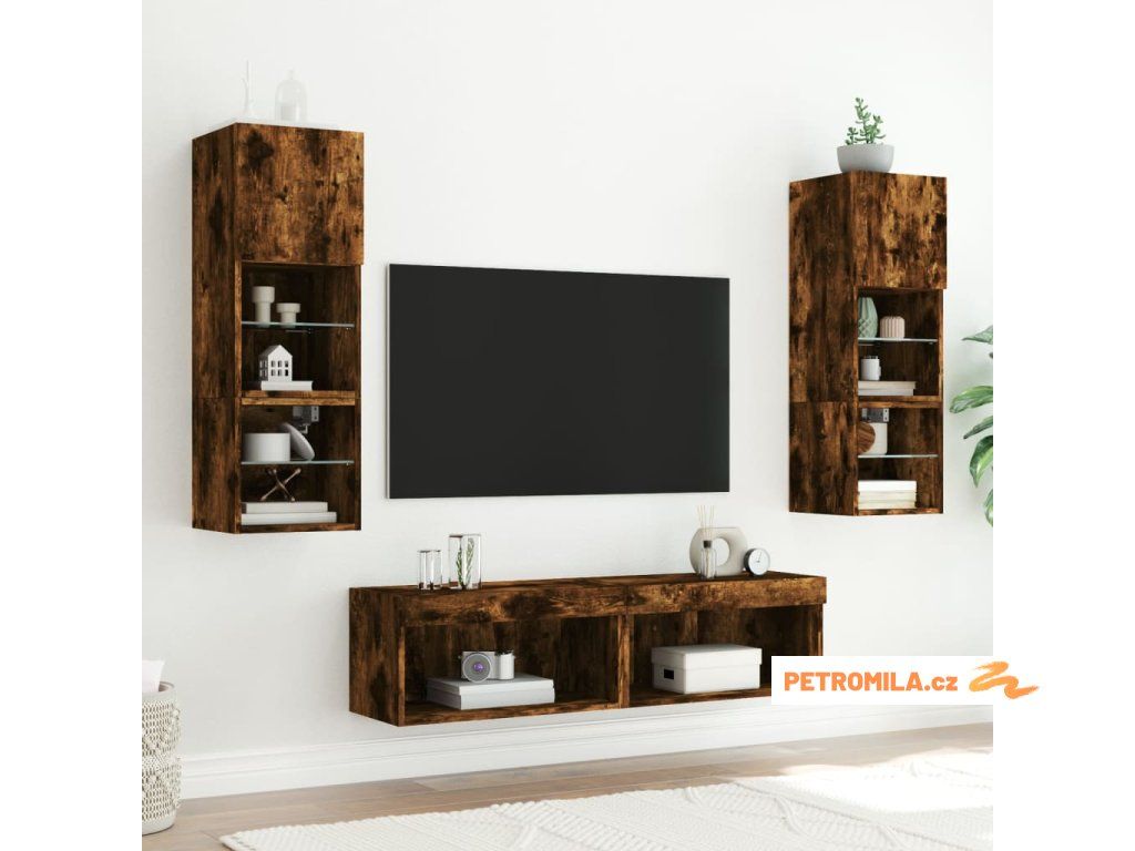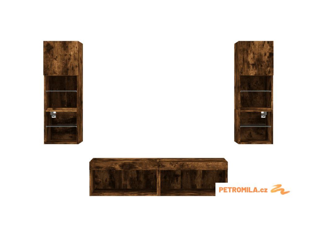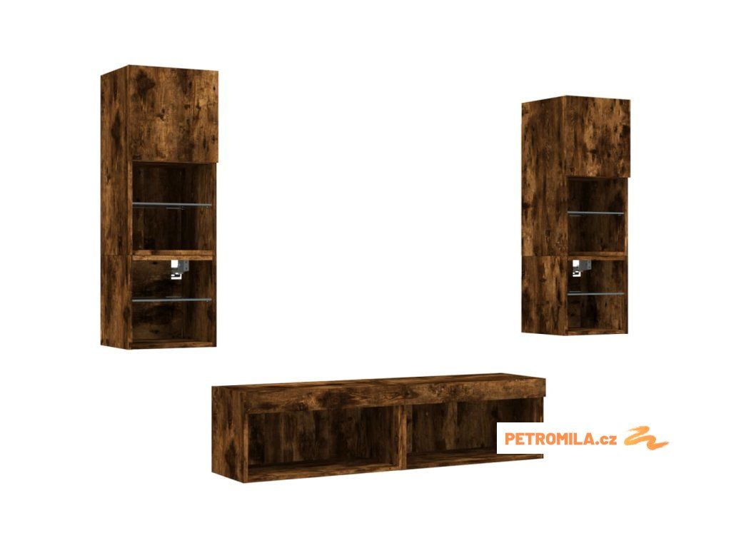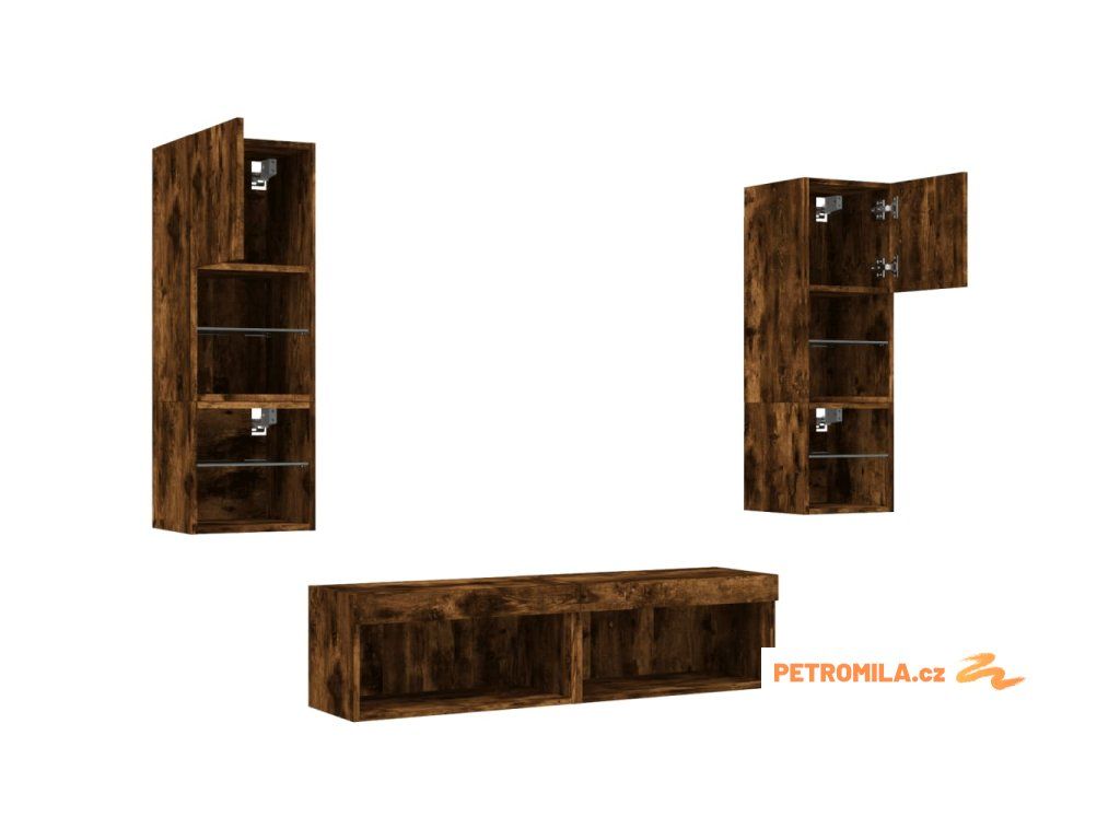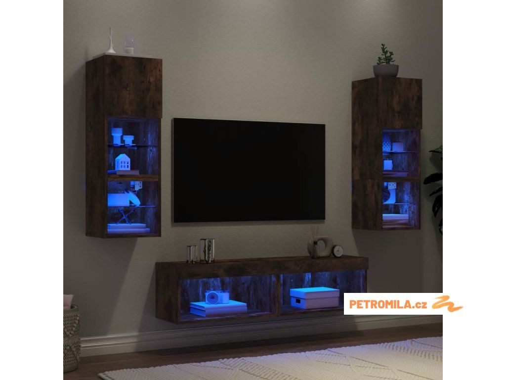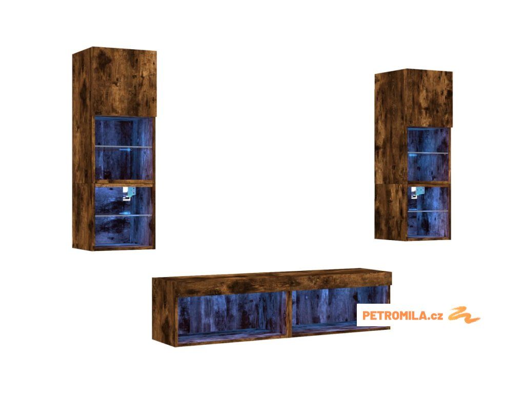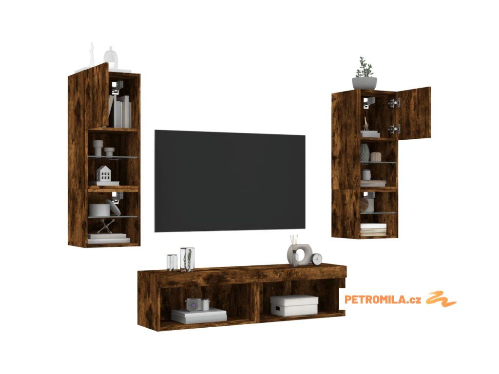 6dílná obývací stěna s LED kouřový dub kompozitní dřevo