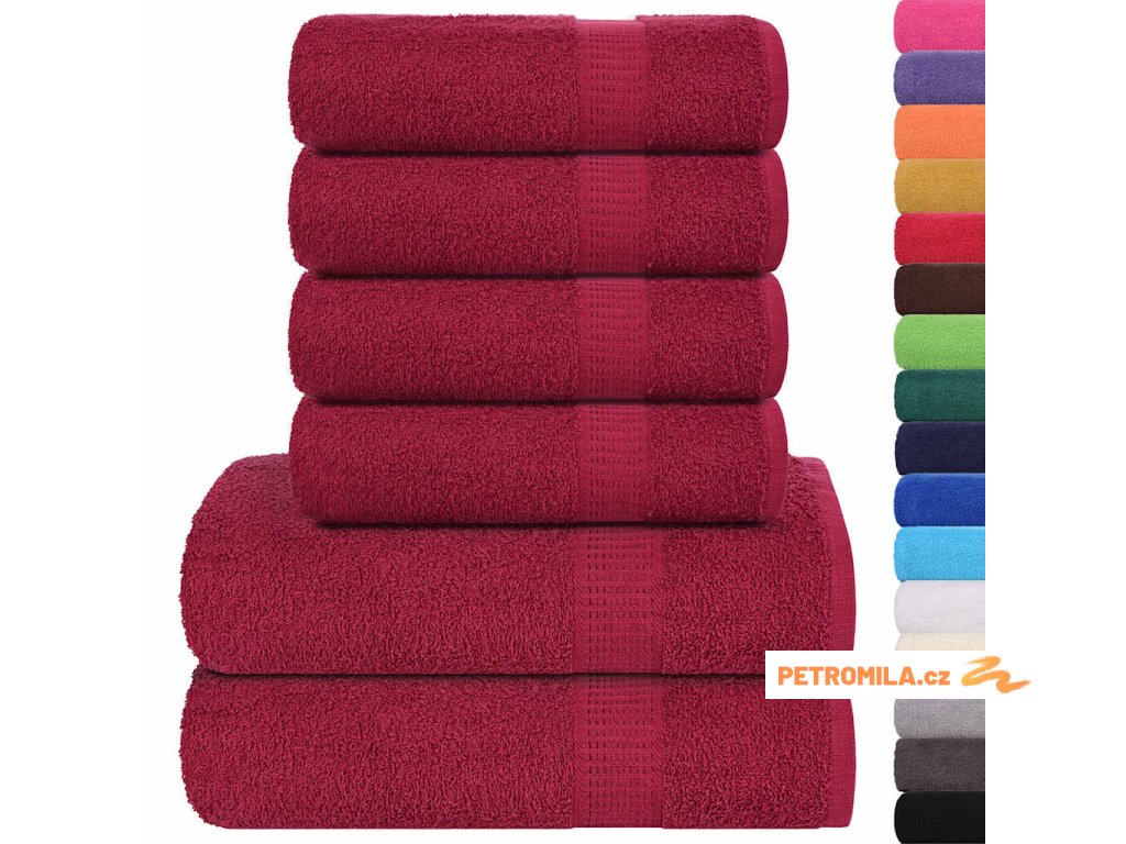 6dílná sada ručníků bordó 360 g/m² 100% bavlna