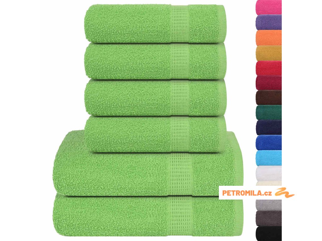 6dílná sada ručníků jablkově zelená 600g/m² 100% bavlna