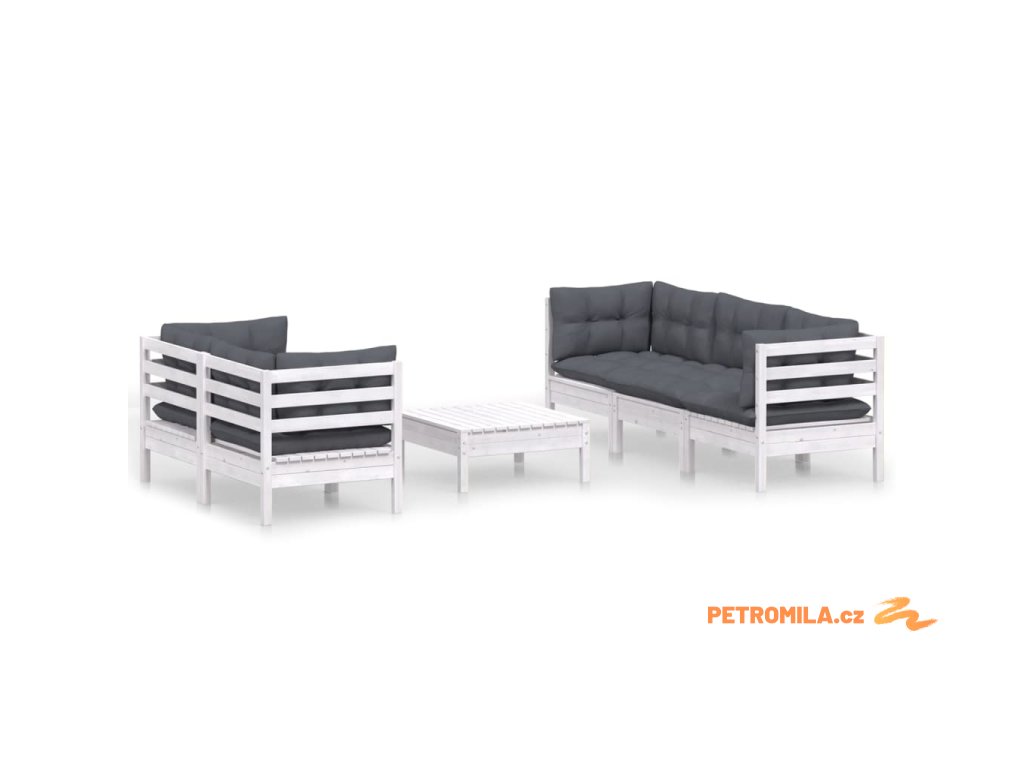 6dílná zahradní sedací souprava a antracitové podušky borovice