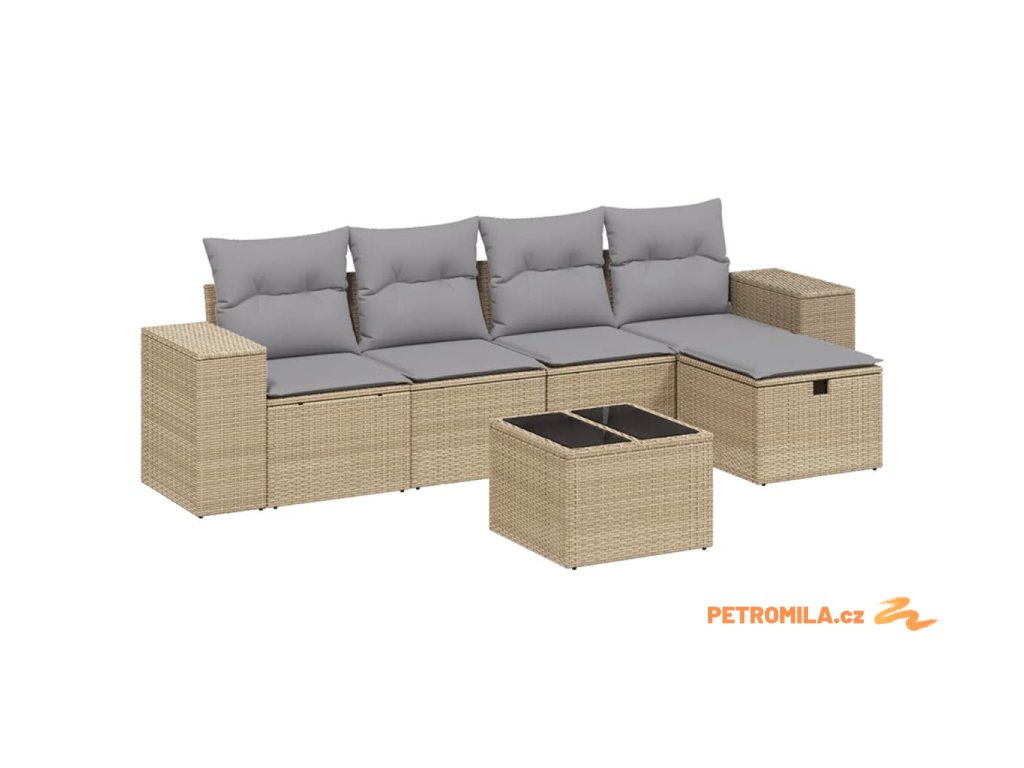 6dílná zahradní sedací souprava a podušky mix béžové polyratan