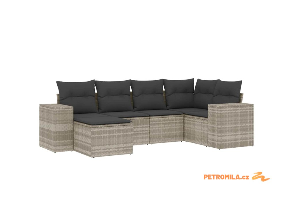 6dílná zahradní sedací souprava a podušky světle šedá polyratan
