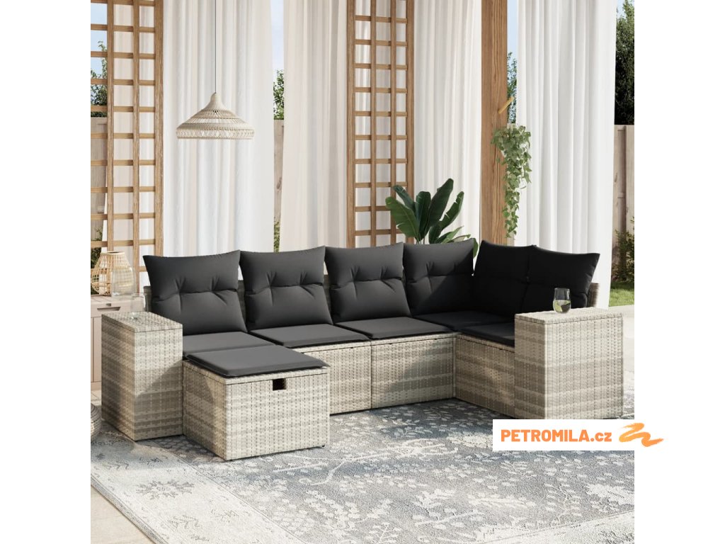 6dílná zahradní sedací souprava a podušky světle šedá polyratan