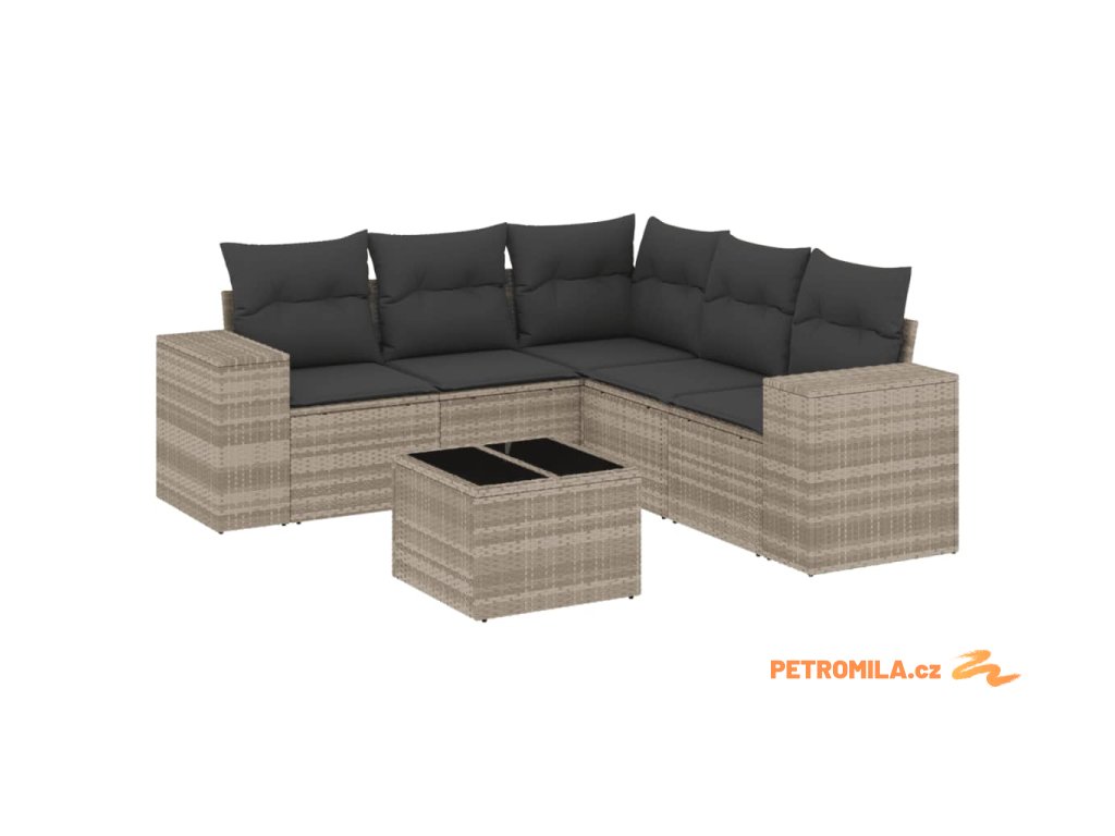 6dílná zahradní sedací souprava a podušky světle šedá polyratan