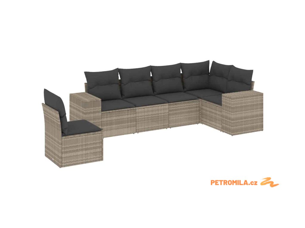 6dílná zahradní sedací souprava a podušky světle šedá polyratan