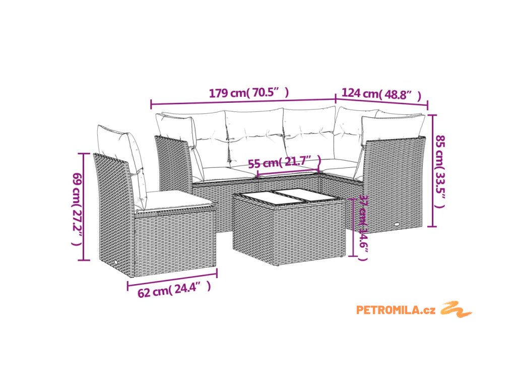 Tato zahradní sedací souprava je dokonalým doplňkem vaší zahrady, terasy nebo dvorku a poskytne vám pohodlné a příjemné místo, kde si můžete povídat s rodinou a přáteli nebo jen tak odpočívat a užívat si pobyt venku.