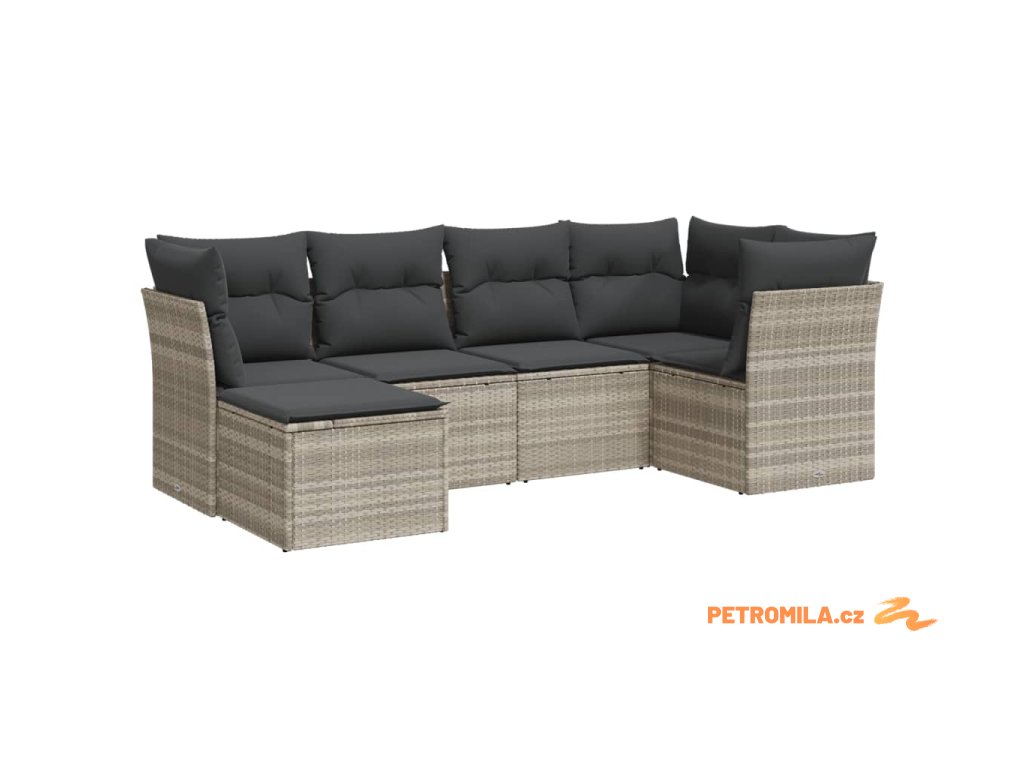 6dílná zahradní sedací souprava a podušky světle šedá polyratan